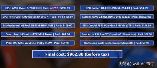 【果然还是被充值了!】数毛社(Digital Foundry)近期探讨了一个玩家关心的话题,能否用900美元组装一台性能媲美PS5 Pro的游戏PC。 数毛社的结论很直接:基本不可能,难度极高。《My Life in Gaming》的Marc Duddleson进行尝试后,总成本也要962美元,且内存部分还是免费获得的。如果算上正常内存成本,价格会更高。 主机在硬件整合与大规模生产的优势,依旧让同价位PC难以追赶。 不过这种对比一点都没有意义,毕竟主机目前只能游戏,而一台PC不仅能玩游戏,还能娱乐,作为工作生产力等等。