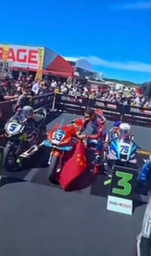 车手德比斯是懂得起的,在赛后和观众互动时,他硬是没接法国国旗,而是接了中国国旗。他把中国国旗先是放到车座垫上,可能是觉得不显眼,他又把旗挂在手把管上。 葡萄牙波尔蒂芒赛道的喧嚣还没来得及褪去,引擎的嘶吼余音绕着赛道护栏打转,看台上的观众还攥着拳头,没从刚才那场惊心动魄的决赛里缓过神来。 刚刚斩获世界超级摩托车锦标赛葡萄牙站双冠的瓦伦丁·德比斯,摘下头盔甩了甩汗湿的头发。 额头上的汗珠顺着脸颊往下滑,混着赛道上溅到的细小灰尘,却一点也挡不住他眼里的光芒——那是压抑了十几年,终于站上巅峰的透亮与坚定。 赛后的围场从来都是人声鼎沸,观众们挤在护栏边,胳膊伸得老长,有人举着签名本,有人拿着手机疯狂拍照,还有人攥着各色旗帜,就盼着能被这位新科冠军注意到。 现场不少本土支持者都带着本国的旗帜前来助威,其中就有观众高举着代表法国的三色旗,满怀期待地挥动,不断朝着德比斯的方向靠近,嘴里还喊着德比斯的名字。 可德比斯压根没往那边看,哪怕余光扫到了那面熟悉的国旗,也只是轻轻一瞥,脚步都没顿一下,随后径直朝着人群另一侧走去。 他的目光很专注,穿过攒动的人头,精准落在了那抹耀眼的中国红上——那是一面五星红旗,被一位中国观众高高举着。 旗面被风吹得微微鼓起,五星在阳光下亮得晃眼,在一片五颜六色的旗帜里,格外引人注目。 看到这面五星红旗后,德比斯的脚步明显快了些,脸上还露出了一抹浅浅的笑。 之后,他走到护栏边,微微弯腰,伸出手,小心翼翼地从那位中国观众手里接过了五星红旗。 随后,他转身走到自己的战车旁,把五星红旗平铺在车座垫上,还用指尖一点点抚平了旗面上的褶皱。 可他在车旁看了两秒,又皱了皱眉,轻轻摇了摇头——车座垫的位置太低,在喧闹的人群里,根本没人能注意到这面国旗,这样根本达不到他想让大家看到的效果。 于是,他又小心翼翼地把国旗从车座上拿起来,一手扶着战车的手把管,一手捏着国旗的一角,慢慢往手把管上系。 系的时候,他反复调整松紧,试了好几次,生怕系得太松,风一吹就掉下来,又怕系得太紧,把旗面扯皱。 他还特意调整了旗帜的角度,让旗面能顺着赛道的风自然展开,确保每一颗五星都能清晰地露出来。 忙活了十几秒,直到看着五星红旗在手把管上稳稳挂好,风一吹就轻轻飘动,红得格外耀眼,他才直起身,满意地笑了。 周围的观众都看呆了,先是愣了几秒,随后爆发出更响亮的欢呼声。 有人用力鼓掌,有人对着德比斯比心,还有人拿出手机,把这一幕牢牢拍了下来。 德比斯11岁就骑着小摩托踏上赛道,16岁就拿下法国国内赛事的冠军,当年也是被整个法国摩托界寄予厚望的天才少年。 可谁也没想到,此后的十几年里,他却一路坎坷,辗转于各个车队之间,有时候只能当替补,有时候连比赛的机会都没有,甚至被人贴上“过气车手”“赛道流浪汉”的标签。 就在2025年底,他还被老东家无情抛弃,那段时间,他甚至一度想过放弃自己热爱了十几年的赛车事业。 就在他最绝望的时候,是中国的张雪机车没有嫌弃他的年龄,没有质疑他的能力。 不仅给了他一份稳定的合约,还为他量身打造了全新的赛车,组建了专业的后勤团队,陪着他一起打磨技术、适应赛道。 德比斯亲眼见过,中国团队的工作人员为了给他调校赛车,守在维修区,一遍又一遍地测试数据。 他也亲身感受过,团队里的每个人都对他充满信任,哪怕他在训练中出现失误,大家也只会耐心鼓励,帮他分析问题、改进不足。 德比斯心里比谁都清楚,如果没有中国车队的信任与支持,如果没有中国制造的优质赛车,他可能早就已经告别了顶级赛场,更不可能站上冠军的领奖台。 他觉得自己的每一份荣耀,都离不开背后的中国力量。 赛道上的风还在吹,手把管上的五星红旗飘得愈发舒展,红得耀眼,亮得夺目。