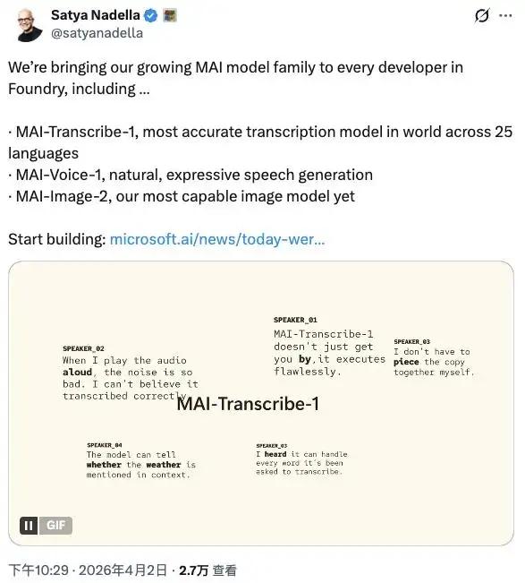 彭博社消息,微软正加速推进自研AI大模型,目标是2027年前达到行业前沿,以减少对OpenAI和Anthropic的依赖。一边是百亿级的投资合作,一边是坚定的自研计划,这种“两条腿走路”的策略很现实。 其AI负责人苏莱曼提到,正在部署英伟达GB200集群来提升算力,并开发能处理文本、图像、音频的多模态模型。这意味着,在模型层,微软要构建自己的技术主权。