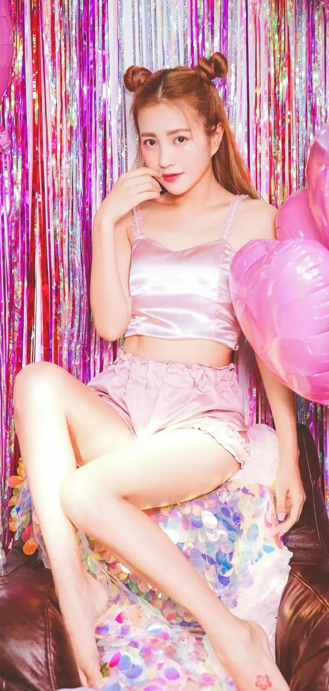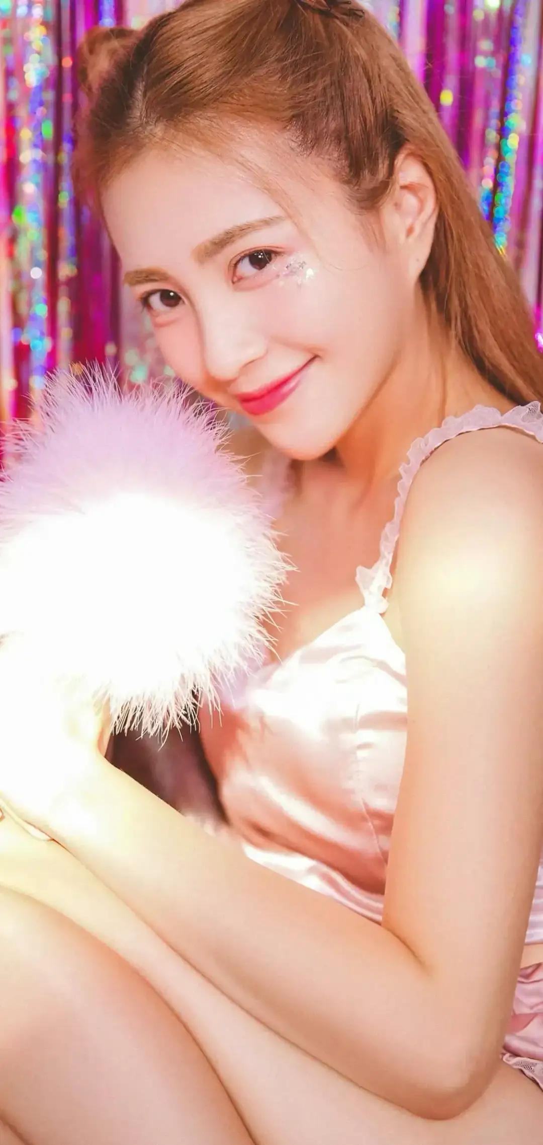 美女壁纸~包文婧, 你的笑容点亮了这个派对,就像这些彩带一样绚丽!双丸子头扎起少女的元气,缎面吊带裹着软乎乎的温柔