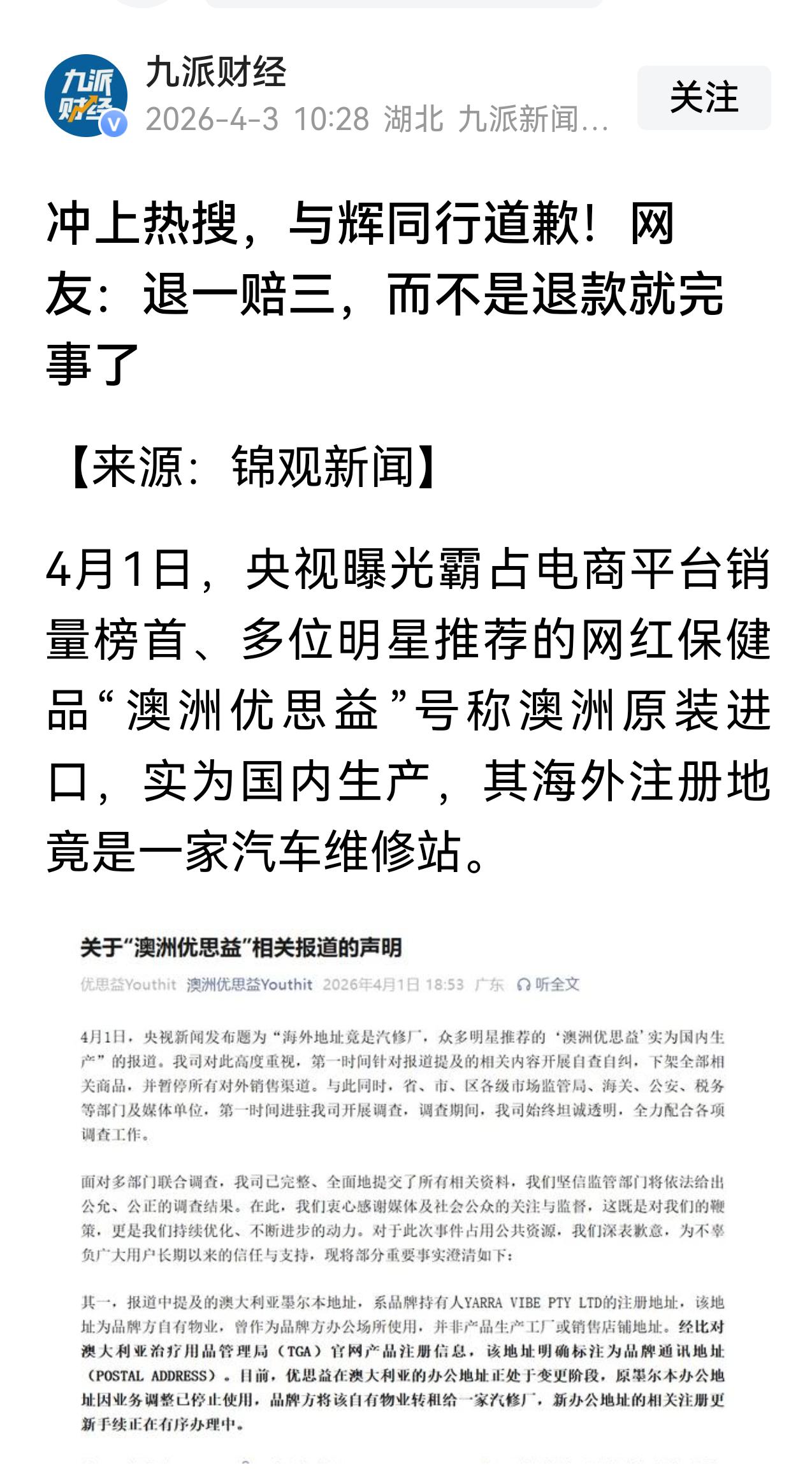 又不是只是与辉同行一家卖过优思益,单单提出来,什么意思? 媒体也有蹭流量之嫌