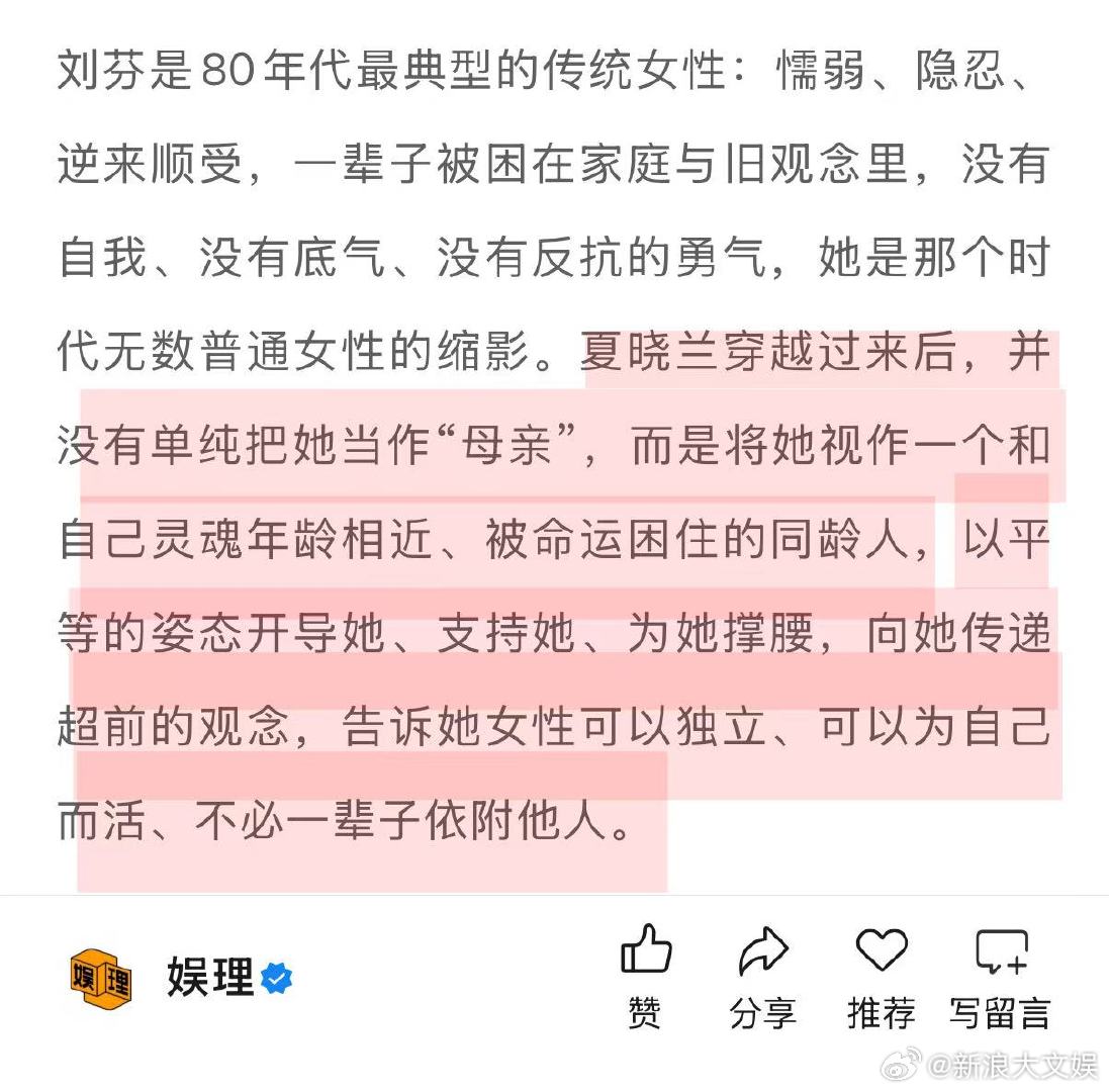 编剧说周也翟潇闻演出了纯爱感 母亲刘芬是《你好1983》编剧侯颖投入了很多情感的角色:刘芬是典型的传统女性,懦弱、隐忍、逆来顺受,没有自我、没有底气、没有反抗的勇气。夏晓兰将她视作和自己灵魂年龄相近、被命运困住的同龄人,以平等的姿态开导她、支持她、为她撑腰… 编剧回应你好1983女本位爽剧