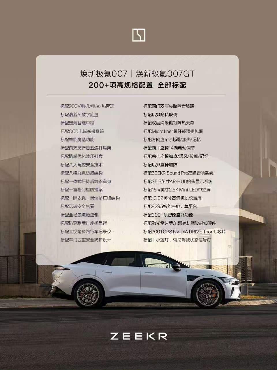 焕新极氪007喜欢开车、追求操控爽感的,直接冲焕新极氪007,正经豪华运动轿车,开起来那股纯粹的驾驶乐趣谁开谁知道!家里东西多、爱出游要装行李装备的,就选极氪007GT,科技猎装轿跑造型好看还超能装,空间拓展贼实用!最戳我的一点:全系直接拉满排面,200多项高配全都标配不用加钱选装,起步就是豪华质感,买车根本不用纠结抠配置,太省心啦!