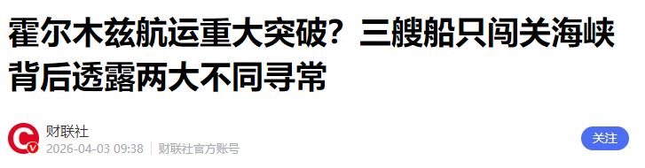 三艘油轮绕过伊朗收费站,国际航运界一片欢呼,德黑兰这下气坏了! 4月3日,三艘载有沙特与阿联酋原油及液化天然气的油轮,沿着阿曼穆桑达姆半岛海岸的一条非传统航线航行,成功绕开了位于拉拉克岛与格什姆岛之间的伊朗检查站。 自从2026年2月28日美国和以色列联合对伊朗发动袭击后,伊朗就宣布关闭了霍尔木兹海峡主航道,后来又出台了新的通行规矩,把这个全世界五分之一石油都要经过的黄金水道,变成了自家的“收费站”和安检口。 简单说,就是过往的油轮要想从这里过,必须先向伊朗革命卫队提交详细信息,经过审查批准,还要缴纳一笔通行费,不然根本别想通过。 伊朗还把话说得很明白,要是美国、以色列的船只,或者是给这两个国家运货的船只,要么交一笔能让船东直接破产的天价过路费,要么就干脆不让过;但如果是伊朗的“老朋友”,就能拿着通行证畅通无阻。 这规矩一出来,全世界的航运公司都犯了难,毕竟霍尔木兹海峡是波斯湾通向印度洋的唯一海上通道,每天有近200条油轮从这经过,2024年这里运送的油品数量日均约2000万桶,占全球日消费的20%,还有20%的液化天然气贸易量也经此运输,说是全球能源运输的“命门”一点都不为过。 之前就有不信邪的船东,仗着有美国撑腰,想硬闯这个检查站,结果伊朗的炮艇直接开火,把油轮打得冒起冲天黑烟。 这一下,所有航运公司都看明白了,在霍尔木兹海峡这块地盘上,伊朗说的算,要想平安过去,就得按德黑兰的规矩来。 可这样一来,航运成本一下子就上去了,通行费、审查等待的时间,都让船东们苦不堪言,大家都在琢磨着,有没有办法能绕开这个“收费站”。 而沙特和阿联酋,作为中东主要的石油出口国,每天都有大量的原油和液化天然气要通过霍尔木兹海峡运往世界各地,伊朗的“收费站”,无疑给他们的能源出口增加了不少麻烦和成本。所以这一次,他们干脆动了绕路的心思,选择了阿曼穆桑达姆半岛海岸的一条非传统航线。 这条航线之所以能绕开伊朗的检查站,是因为阿曼穆桑达姆半岛是阿曼的一块飞地,紧邻霍尔木兹海峡南岸,这条航线靠近阿曼领海,不在伊朗检查站的管控范围内。 根据相关信息显示,这三艘油轮在伦敦时间上午9点30分左右,就停止发送自动位置信号,当时它们正接近或绕过阿曼穆桑达姆半岛顶端,要知道这个区域信号干扰和欺骗比较严重,不过正常穿越这条航线通常只需要几个小时,最终这三艘油轮成功避开了伊朗的管控,顺利完成了航行。 消息一传出来,国际航运界瞬间沸腾了,一片欢呼雀跃。对于那些常年往返于波斯湾和印度洋的航运公司来说,这无疑是一个重大利好。大家之所以这么开心,就是因为绕开这个“收费站”,不仅能省下一笔可观的通行费,还能避免被伊朗审查、拖延时间,大大降低了航运成本和风险。 之前因为伊朗的新规,3月份以来商船通过霍尔木兹海峡的次数,比冲突前下降了95%,很多航运公司都陷入了两难,现在这三艘油轮的成功,给大家指了一条新路子,也让大家看到了避开伊朗“收费站”的可能。 而伊朗德黑兰方面,得知这个消息后,彻底气坏了。要知道,这个检查站对伊朗来说,不仅仅是能收取通行费、增加收入那么简单,更重要的是,通过这个检查站,伊朗能牢牢掌控霍尔木兹海峡的通行权,彰显自己在这一区域的影响力。 现在三艘油轮成功绕开,不仅让伊朗少赚了一笔通行费,更打脸的是,这说明伊朗的管控并不是无懈可击,其他国家的油轮完全可以选择其他航线避开管控,这无疑削弱了伊朗在霍尔木兹海峡的主导地位。 其实早在3月31日,伊朗议会国家安全委员会就通过了对霍尔木兹海峡通行船只收费的法案,计划用本币里亚尔建立收费系统,还明确禁止美国、以色列以及参与制裁伊朗的国家船只通行,就是想通过这种方式,进一步巩固自己对海峡的控制,同时增加收入。 可没想到,法案刚通过没几天,就出现了油轮绕开检查站的情况,这无疑是给了伊朗一记响亮的耳光。 有消息称,伊朗方面已经对这件事做出了回应,谴责这种绕开检查站的行为,并且表示会加强对周边航线的监控,防止更多油轮效仿。 毕竟如果越来越多的油轮都选择绕开伊朗的检查站,那么伊朗设立的“收费站”就会变得名存实亡,不仅会损失大量收入,还会彻底失去对霍尔木兹海峡的有效管控,这是伊朗绝对不能接受的。 这件事看起来只是三艘油轮绕开一个检查站那么简单,但其实背后反映的是中东地区能源博弈的加剧。霍尔木兹海峡作为全球最重要的能源运输通道,谁能掌控这里的通行权,谁就能在国际能源格局中占据主动。 伊朗设立“收费站”,本质上是想通过掌控海峡通行权,提升自己的国际地位,同时应对美以的制裁和打压;而沙特、阿联酋等国绕开检查站,则是为了降低能源出口成本,摆脱伊朗的牵制。