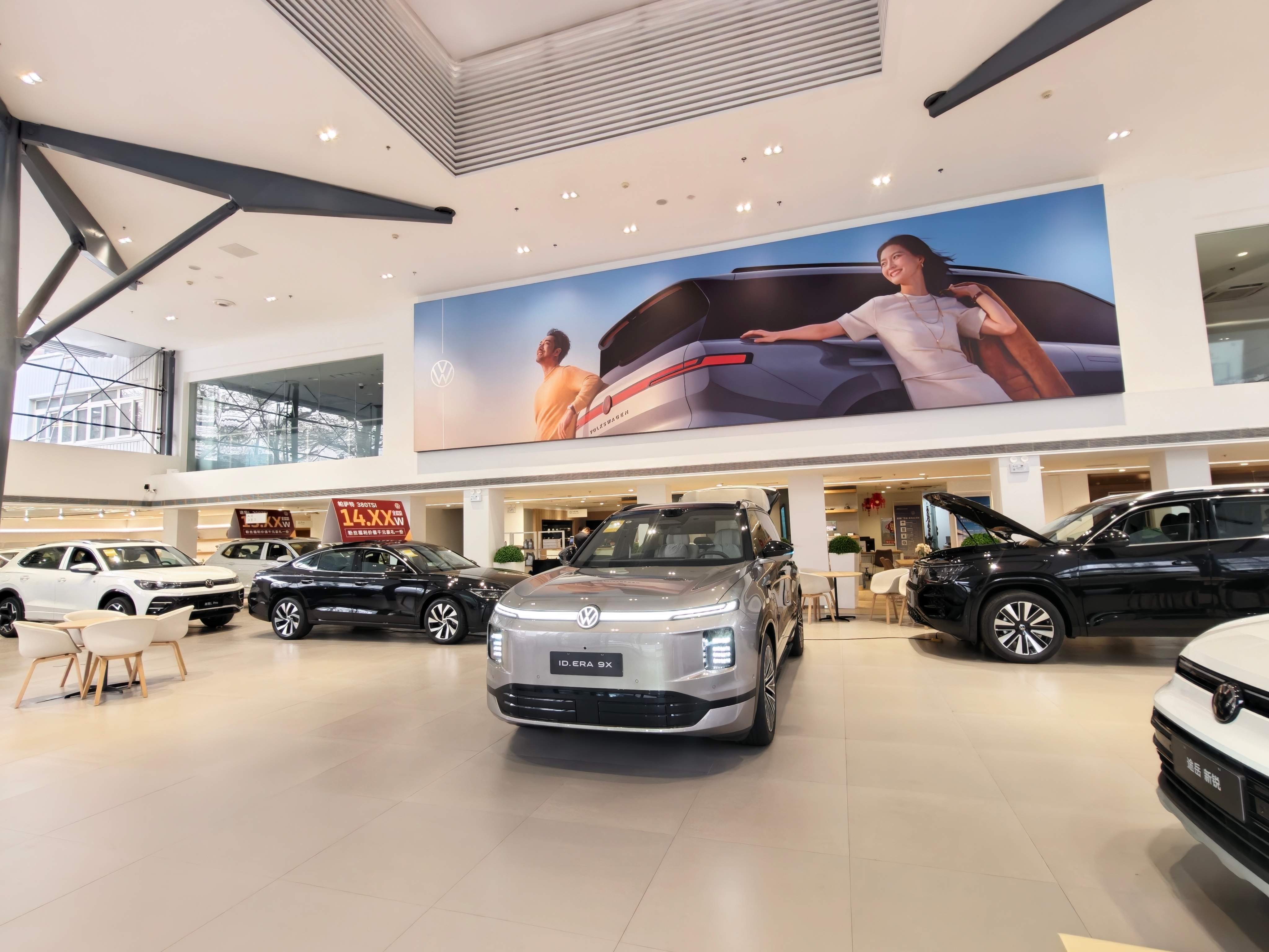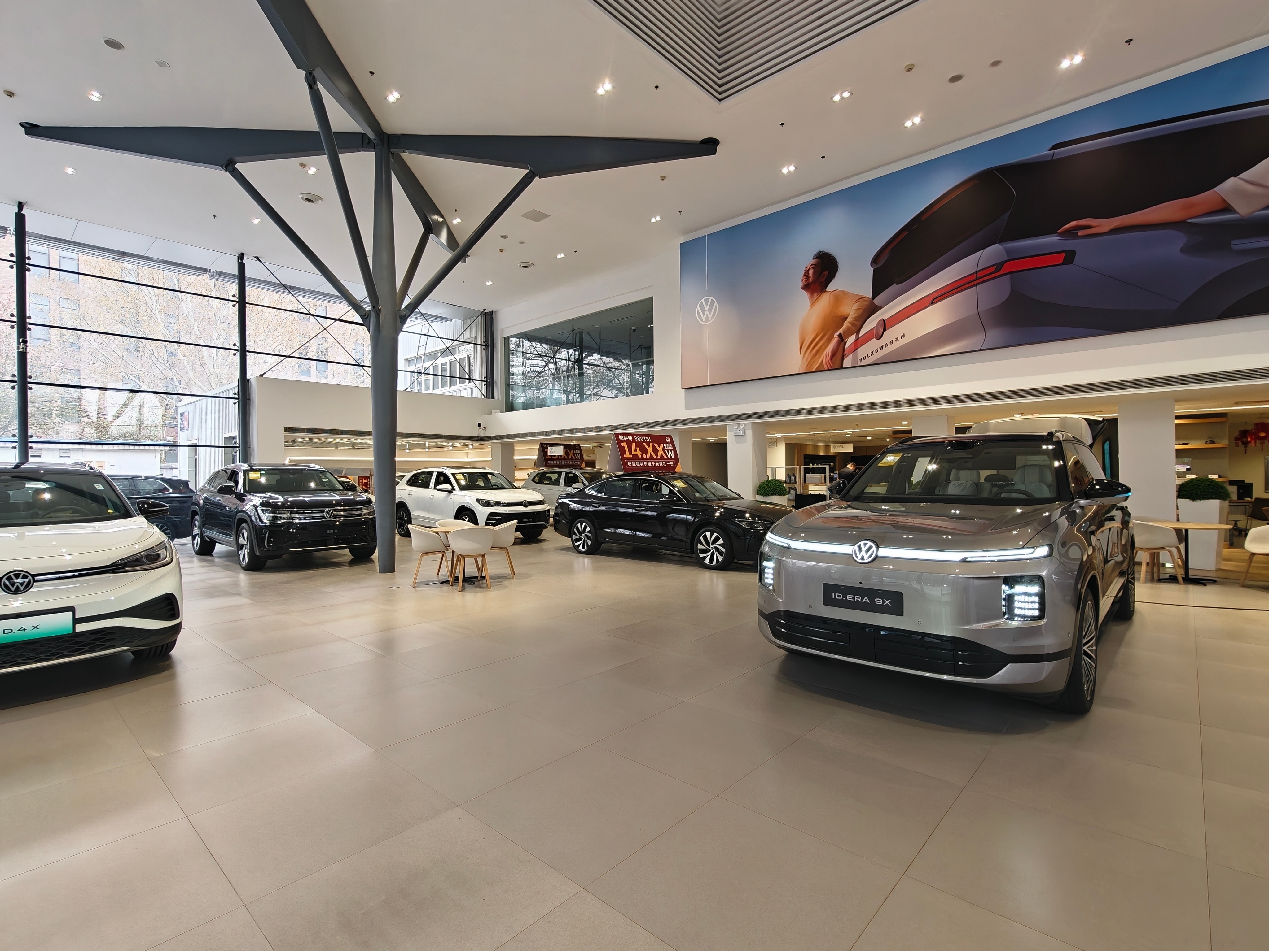 1.【ID. ERA 9X已成C位】小编前往的上汽大众4S店中大概摆放了10台上汽大众旗下产品,主要为油车,其中ID. ERA 9X摆放在C位,任何一个想要进店看车的人都必须经过此车。因此,进店用户即便是路过也会多看两眼。