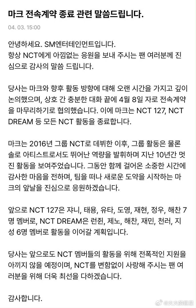 啊???李马克退出NCT了李马克与SM合同终止李马克结束NCT活动