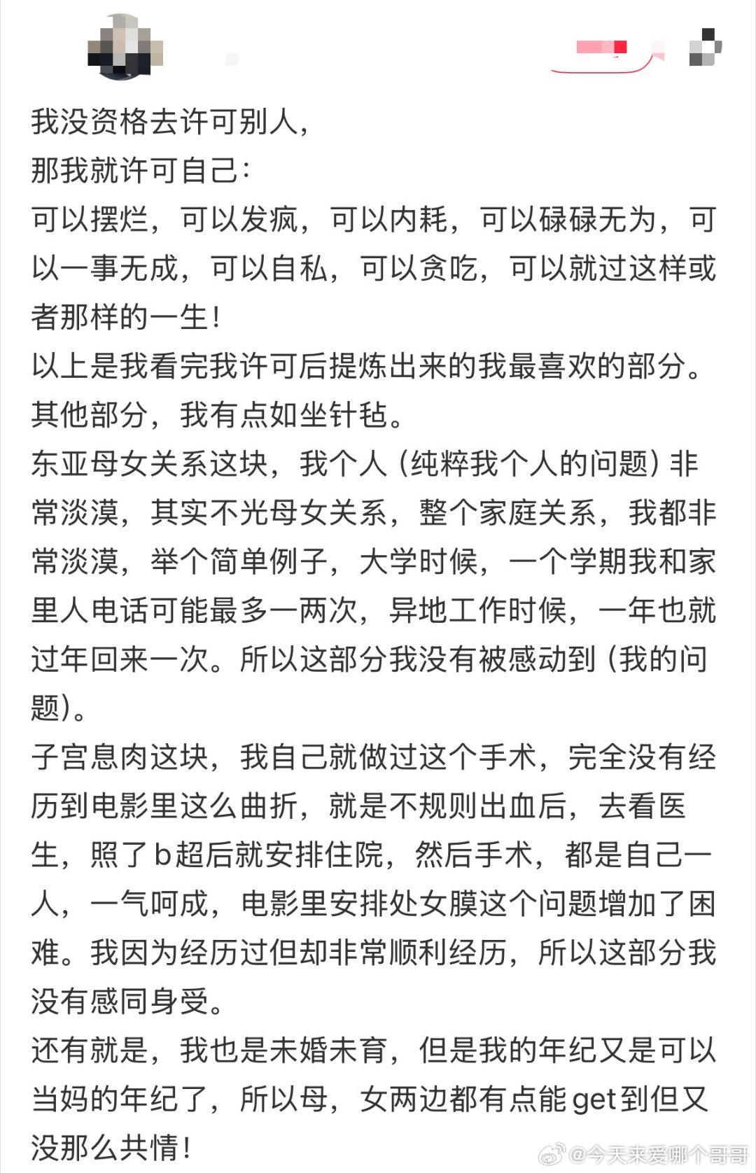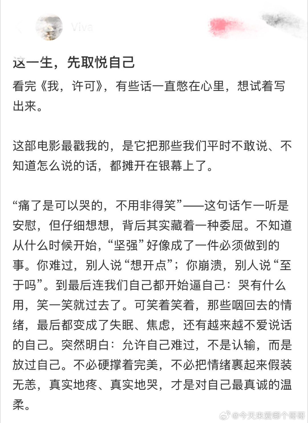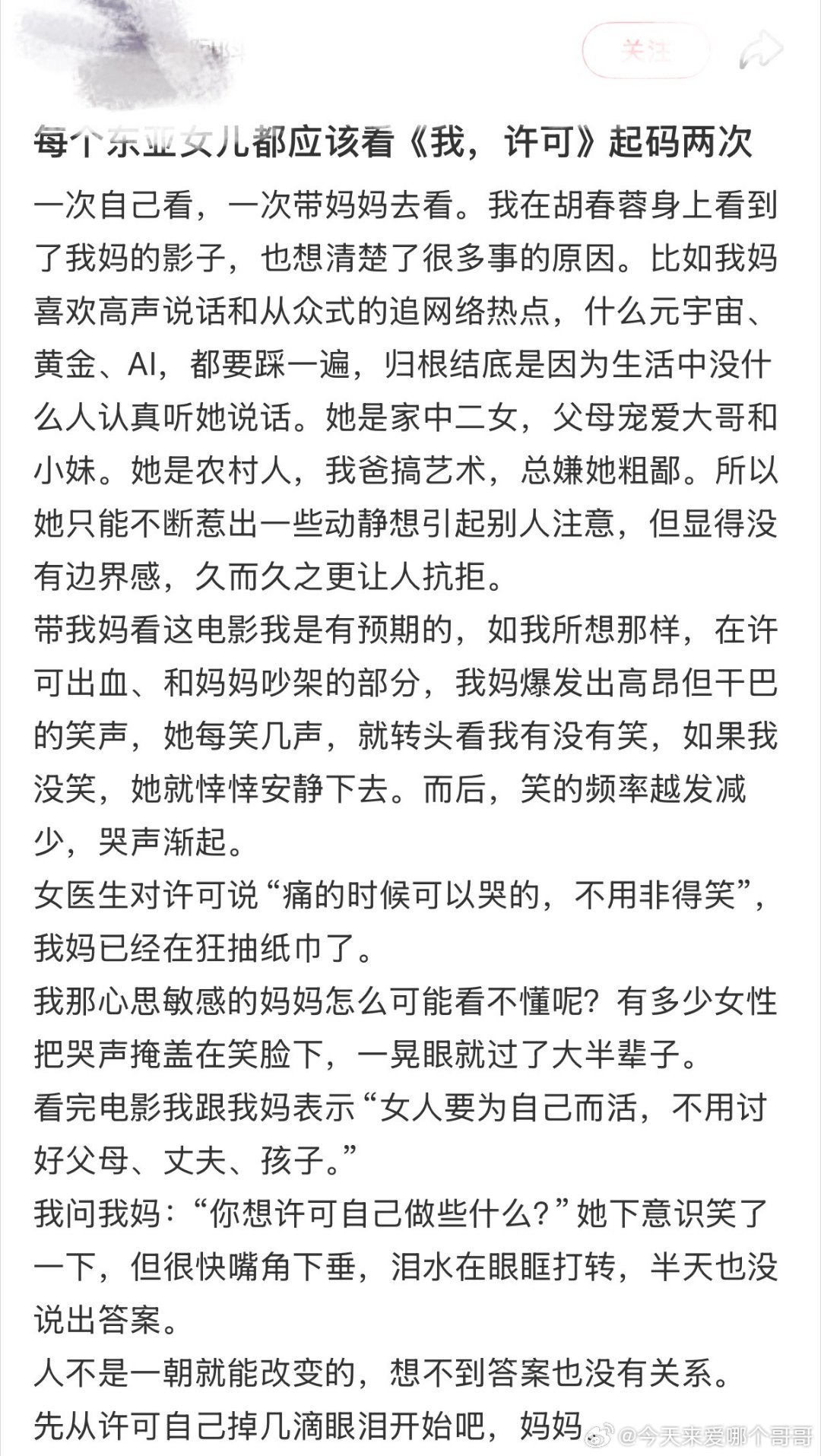 文淇许可是一个名字也是一个动词 谁还不知道我们许可登中国妇女报了,太牛了,能被这种权威媒体认可!许可和胡春蓉的出现让很多人醍醐灌顶,在母女关系、性知识、月经知识、身材焦虑等方方面面,真的都狠狠点醒了我!最喜欢的那句“她比我学得快才好呢!”,希望女孩子们都能像许可一样,许可自己勇敢、自洽、步履不停!