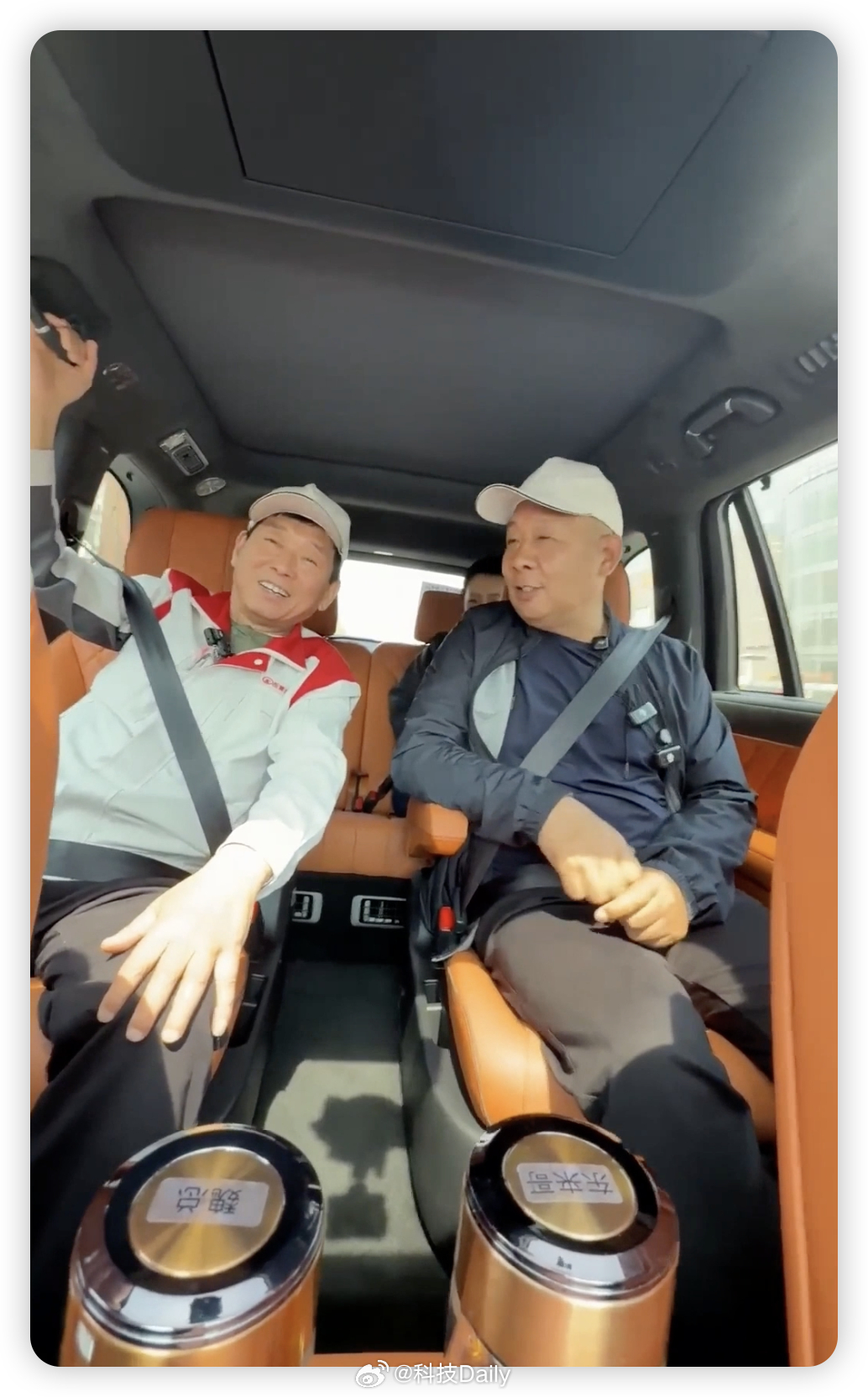 这不俩人见面现场也体验了一下魏牌V9X,豪华感感堪比卡宴,有品质设计更有态度,不仅可以对标国际车型,更有自己的亮点。