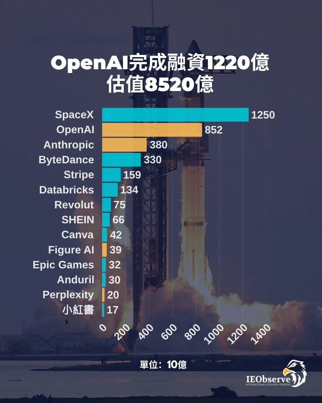 几个未上市的大公司估值,SpaceX 最贵 1250 亿美金,OpenAI 852 亿,Anthropic 380 亿,第四是咱们中国的字节 380 亿美金,字节凭啥比 Anthropic 便宜?AI商业