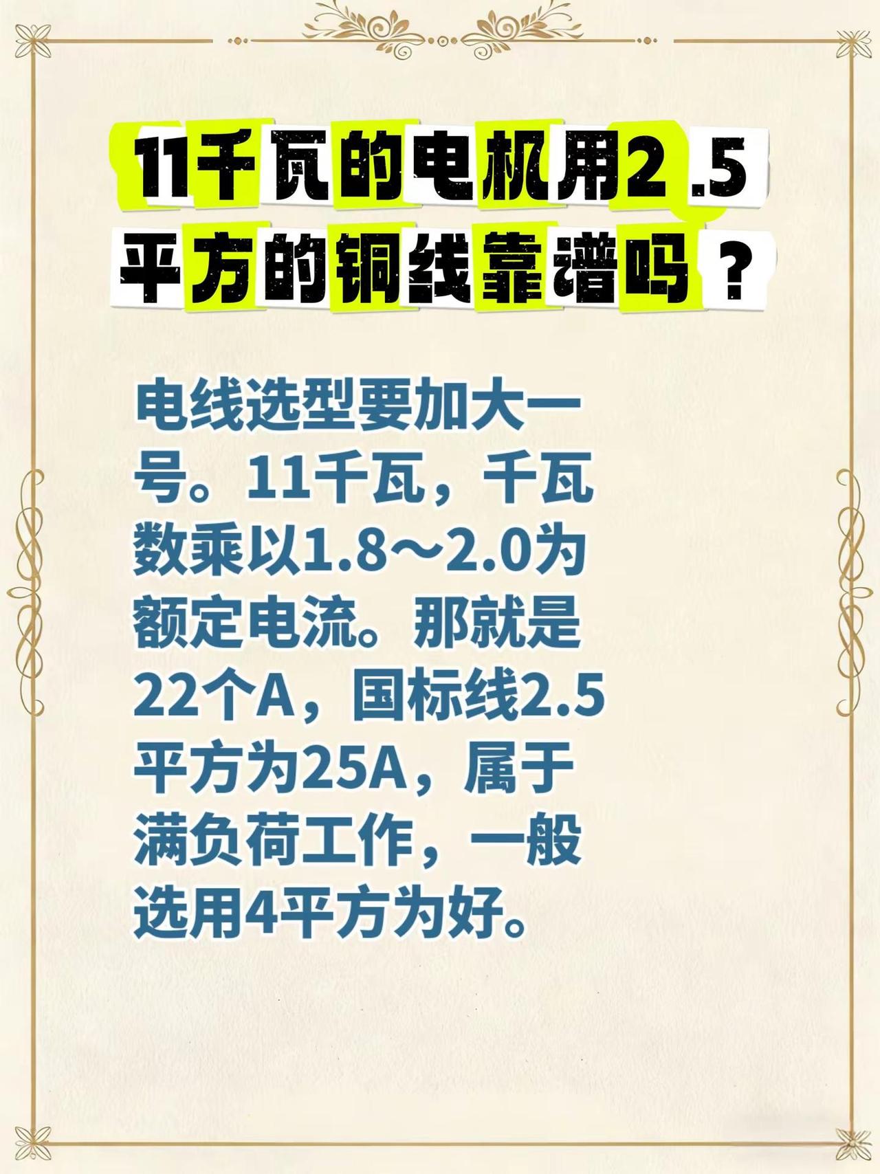 11千瓦的电机用2.5平方的铜线靠谱吗。