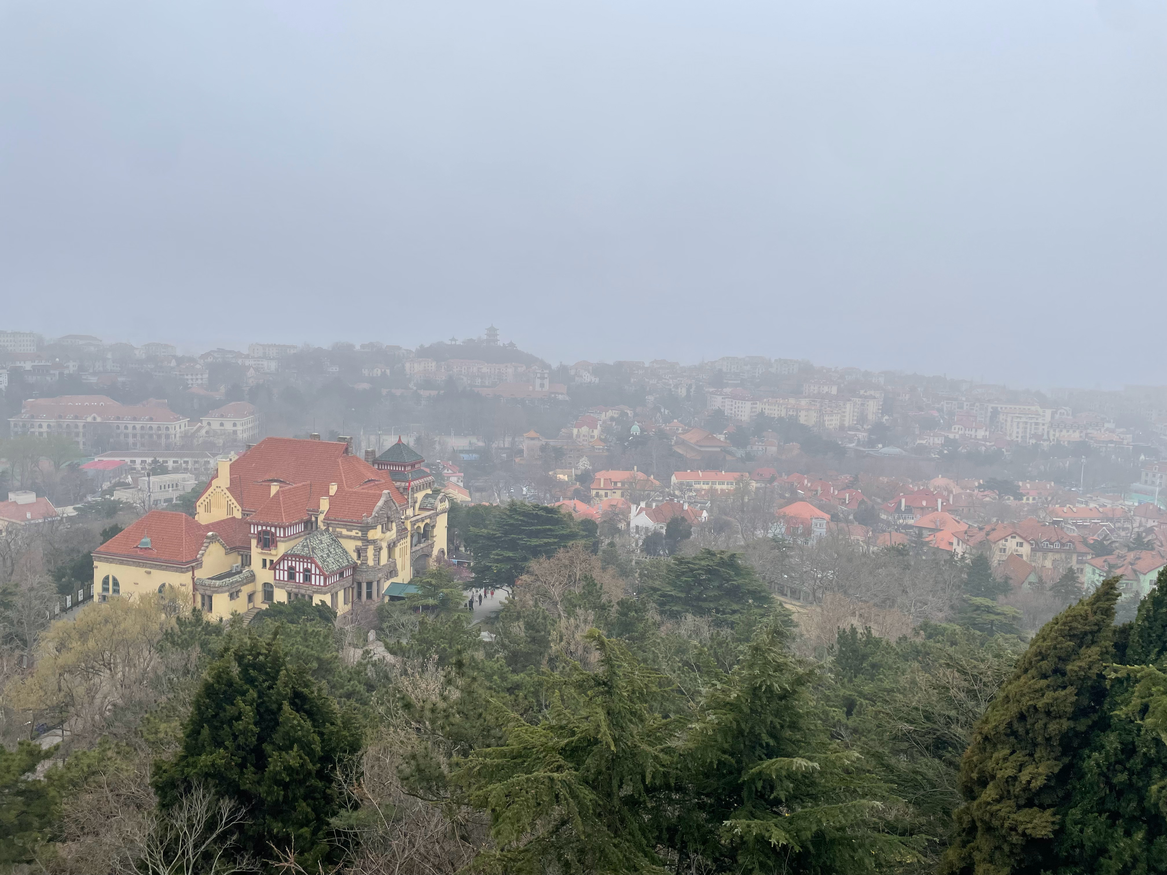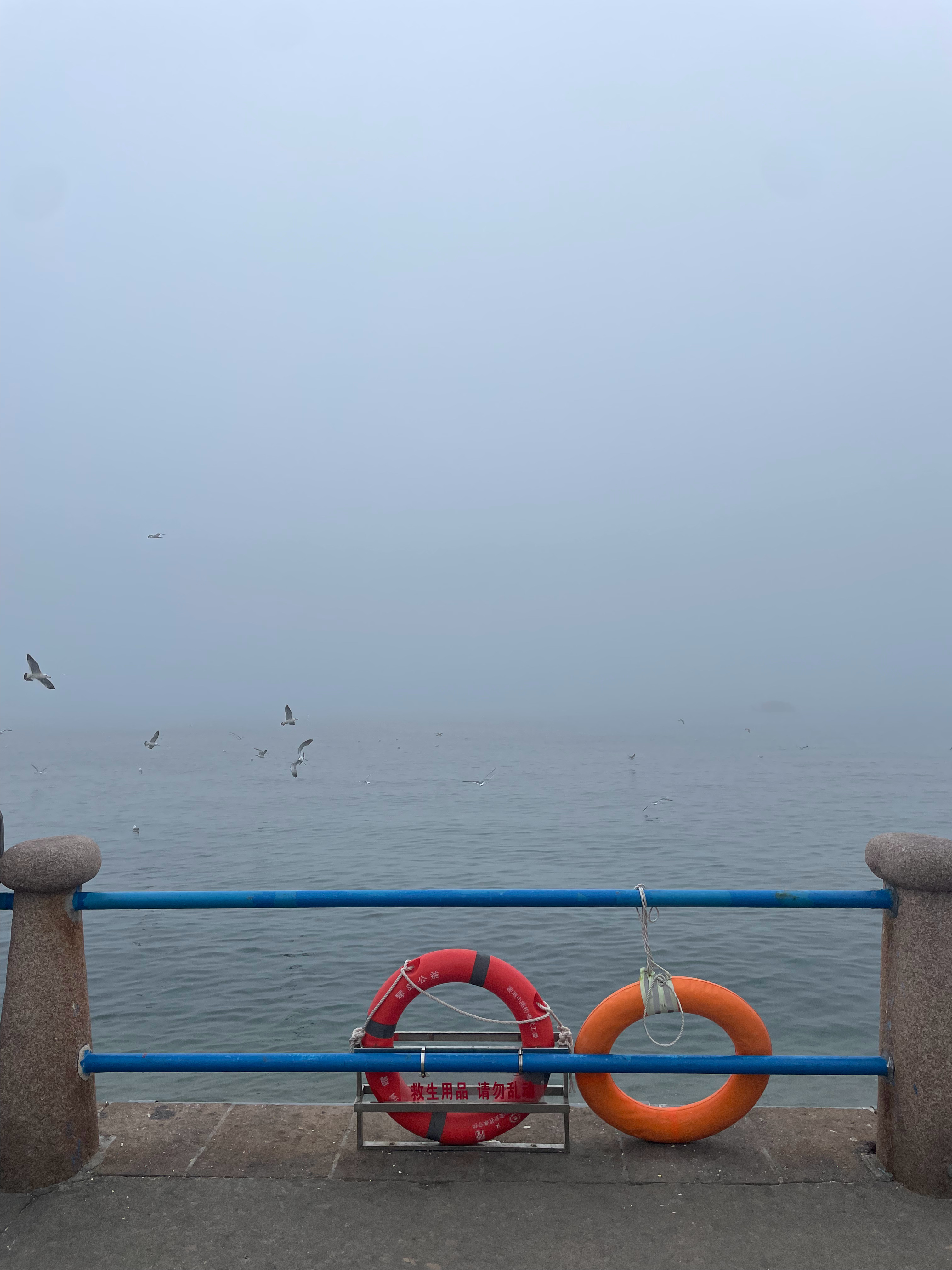 平流雾散去,海边散步。 青岛·情人坝