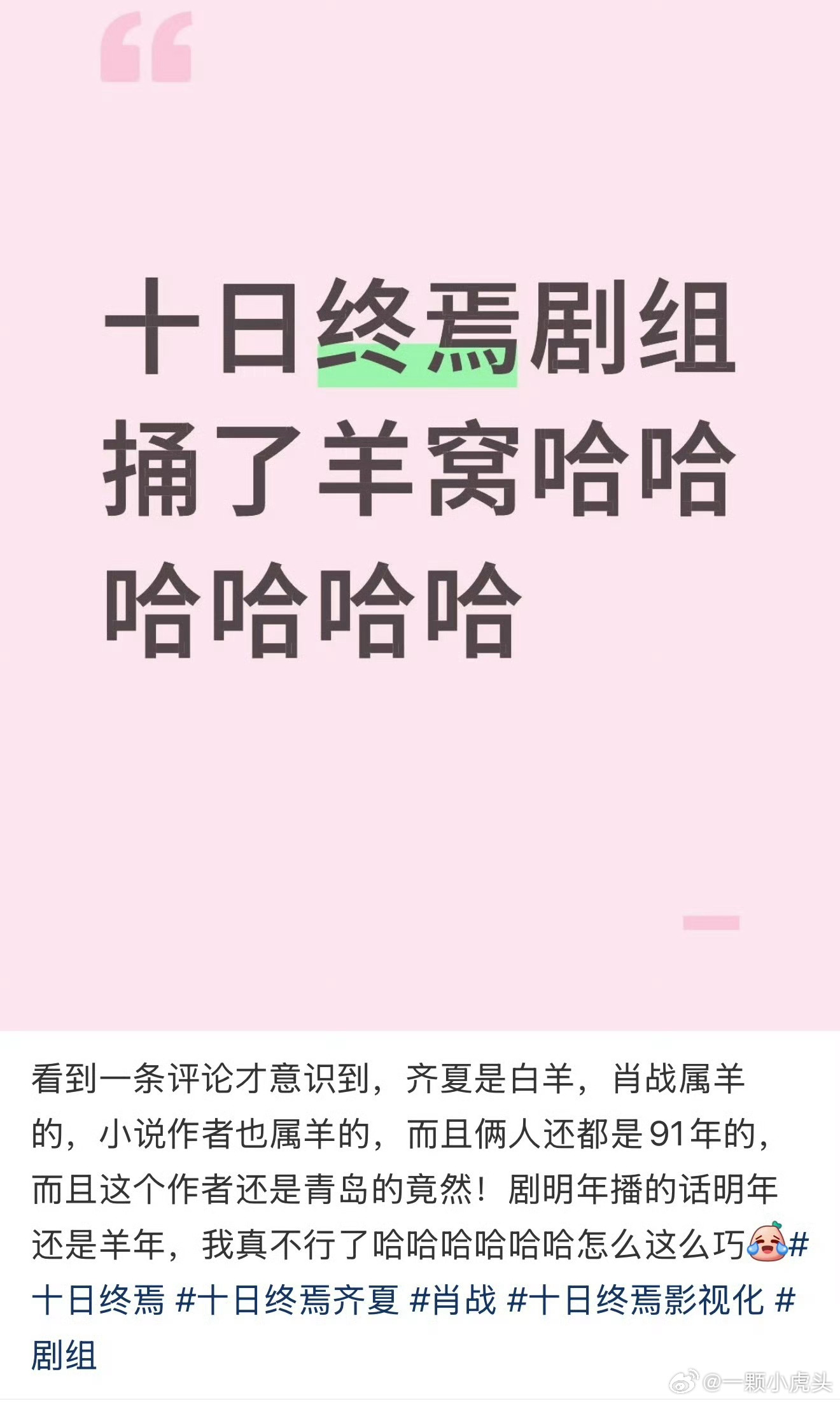 十日终焉这是捅了羊窝原著作者属羊,齐夏是白羊,演齐夏的肖战属羊,4月份开拍,4月
