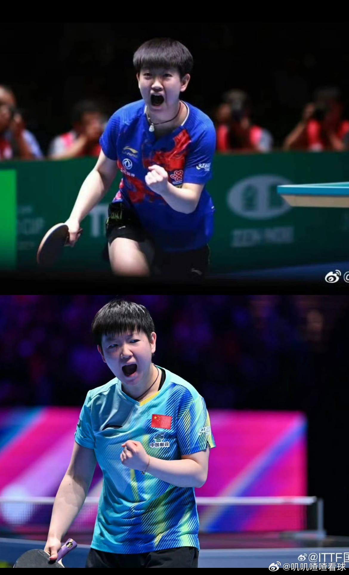 孙颖莎在2019年的世界杯团体赛和2026年的澳门世界杯进八强!眼神很像,但也不像!19年的对手是伊藤,可今天的对手是蒯蔓!打得太累了,最难打的就是内战!