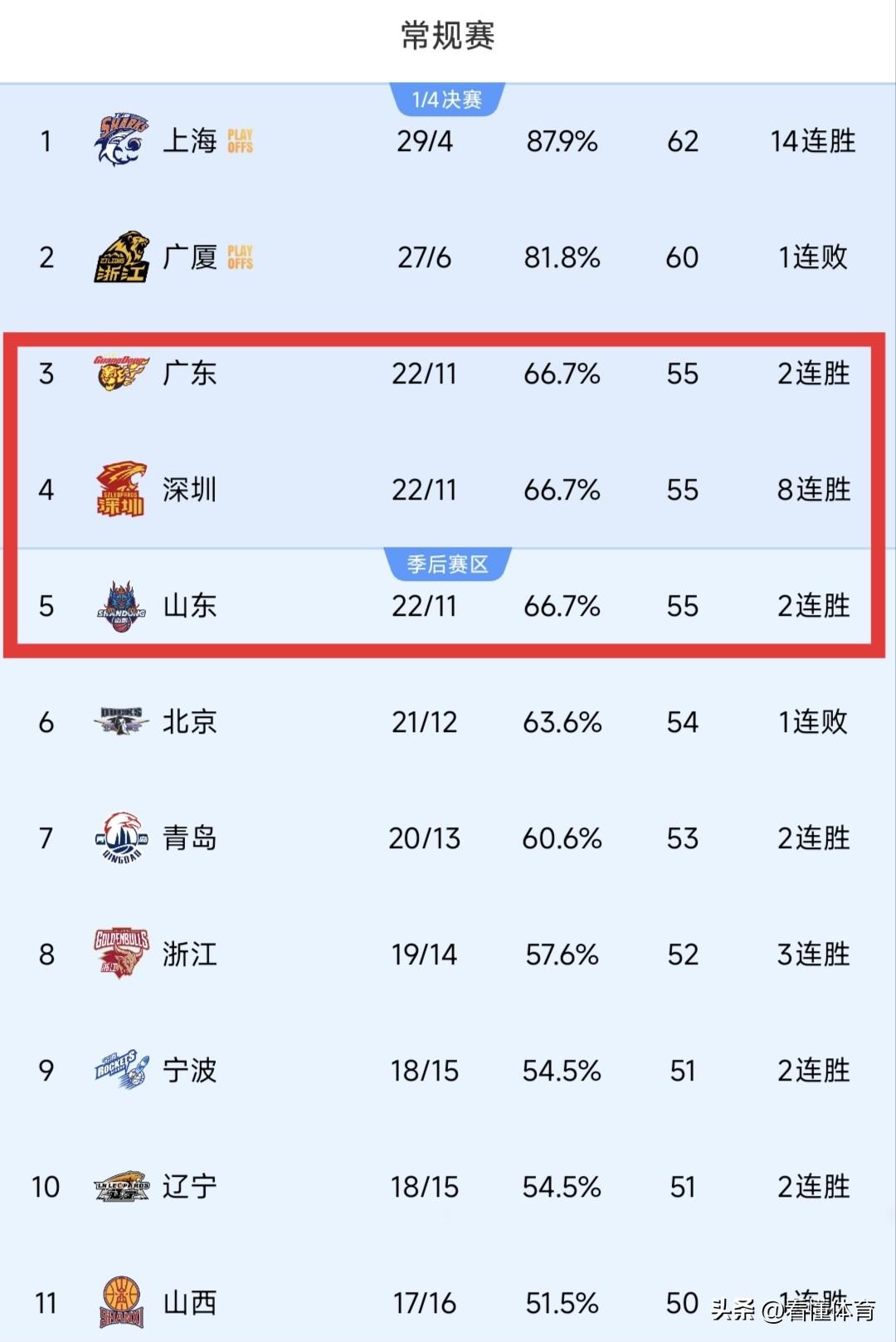 广厦爆冷输深圳,最大受害者竟是广东队? 昨晚的CBA常规赛广厦爆冷大比分不敌深圳,看似无关的广东队,反倒成了最大输家。 因为目前广东、深圳、山东同为22胜11负,广东仅靠胜负关系暂列第三,深圳赢球后,广东前四排名压力骤增,几乎没了犯错空间,随时都可能跌出前四。 更关键的是,广东明日就要对阵广厦,此役深圳早早拉开分差,广厦提前换下主力,胡金秋仅出战14分钟,主力消耗极小。 而广厦惨败后势必憋着劲避免连败,全力迎战广东,广东以逸待劳的计划彻底落空,接下来的比赛难度增大了不少。 最后,各位球迷朋友们觉得明晚广东队胜算几何,能赢下广厦,稳住排名吗?