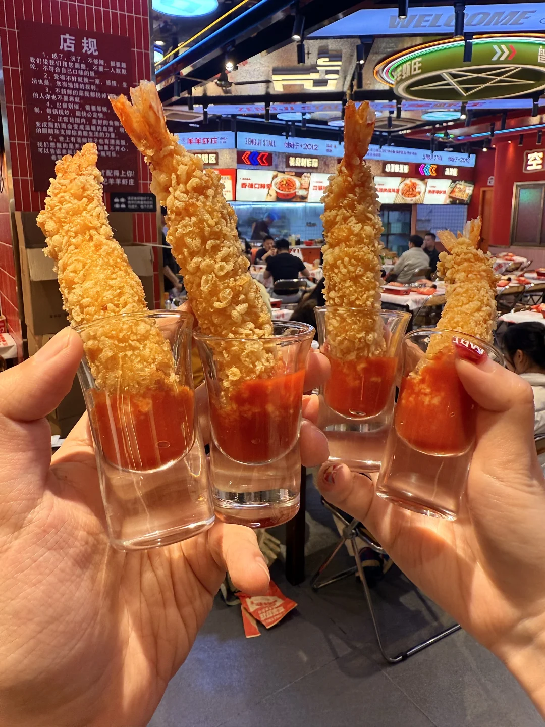 毫不夸张!!南昌本地人推荐的果然没错!!! 真的…好!好!吃!闭眼选都不会踩雷。 叫:曾记羊羊虾庄!基本上饭点都是座无虚席, 附近居民都夸味道好!臭豆腐小龙虾好特别,小龙虾是招牌口味又多又好吃!搭配口袋馍好好吃!烧烤也非常香!鸡翅每次来都会点!! 姐妹们,来南昌逛完滕王阁建议直奔这里吃!