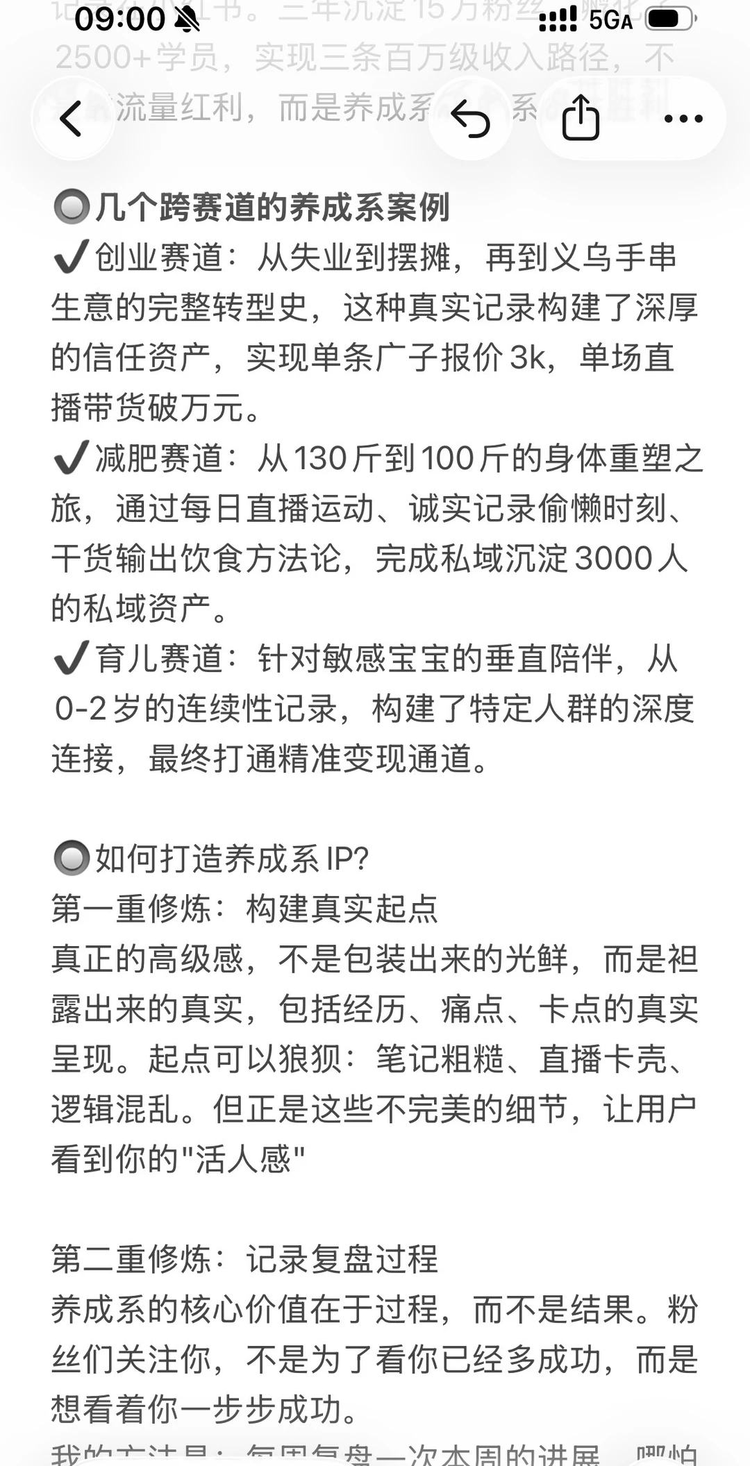 真正的高级感,不是包装出来的光鲜,而是袒露出来的真实,包括经历、痛点、卡点的真实呈现。起点可以狼狈:笔记粗糙、直播卡壳、逻辑混乱。但正是这些不完美的细节,让用户看到你的"活人感"。