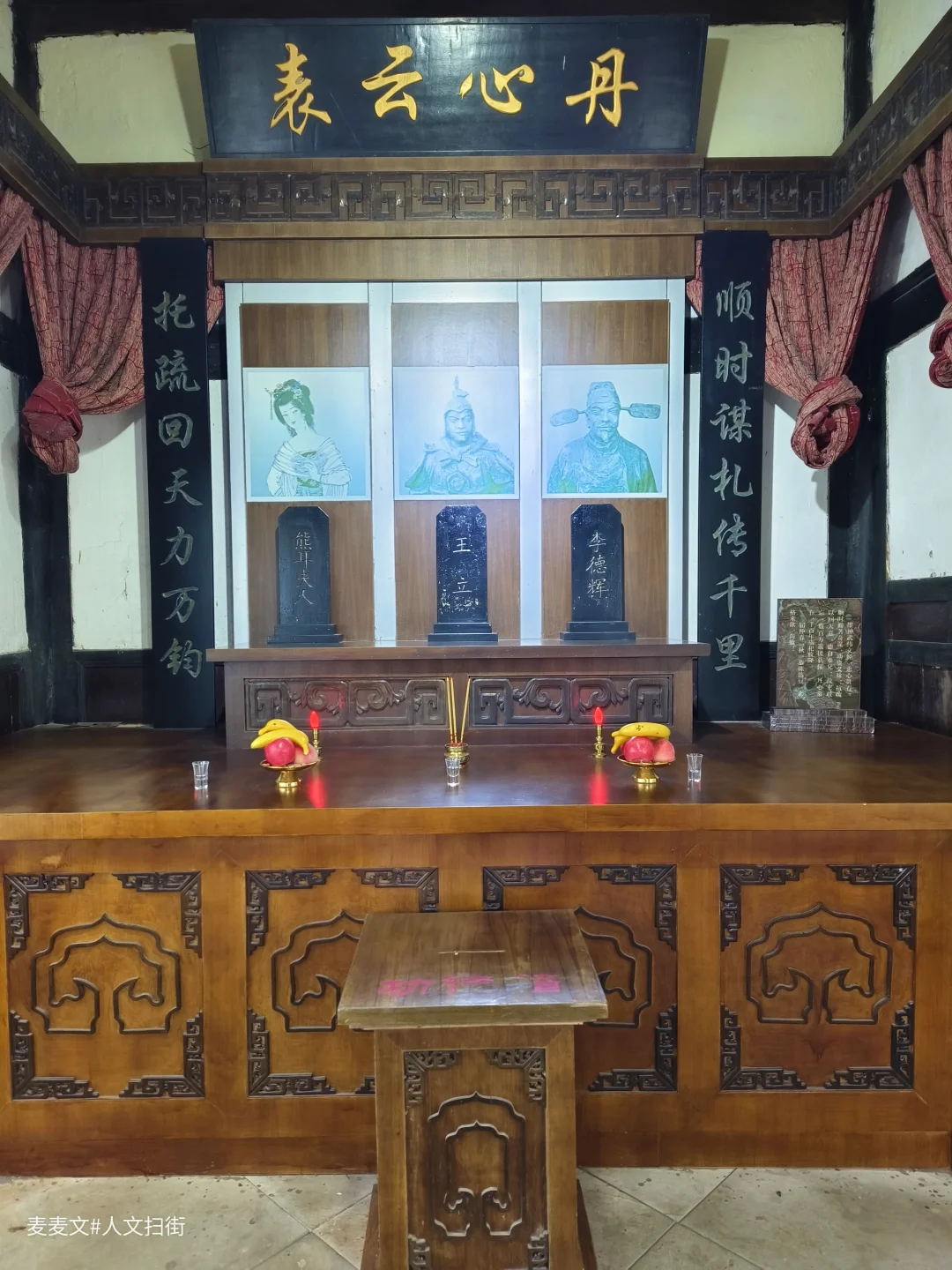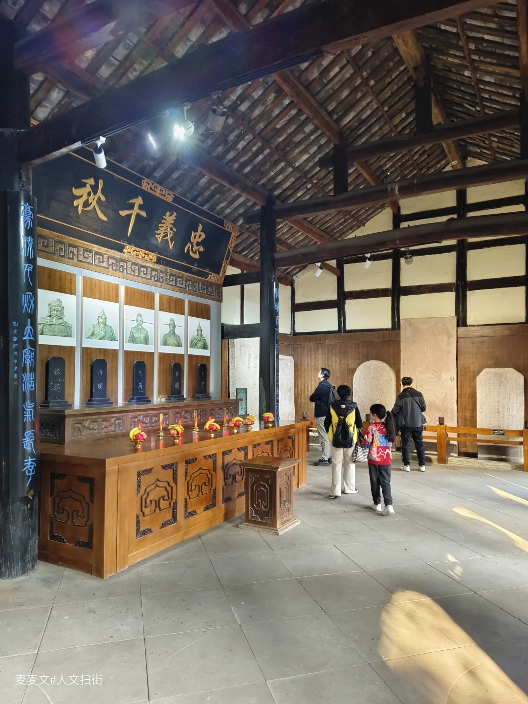 石牌坊门额“忠义祠”三字苍劲,院内古榕盘根错节,青瓦木构的三合院,在光影里满是古朴厚重。正堂高悬“忠义千秋”匾额,五位抗蒙英雄的牌位静静伫立,每一尊都承载着钓鱼城36年独钓中原的铁血传奇。