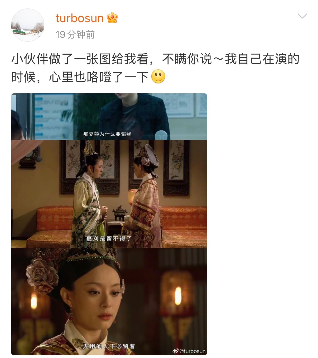 孙俪演的时候也咯噔了一下 孙俪有专属咯噔文学哈哈哈!孙俪看到这段时自己都忍不住咯噔一下,熟悉的情节瞬间梦回《甄嬛传》,跨剧联动的DNA狠狠动了。夏yi就这样跟着孙俪从古到今