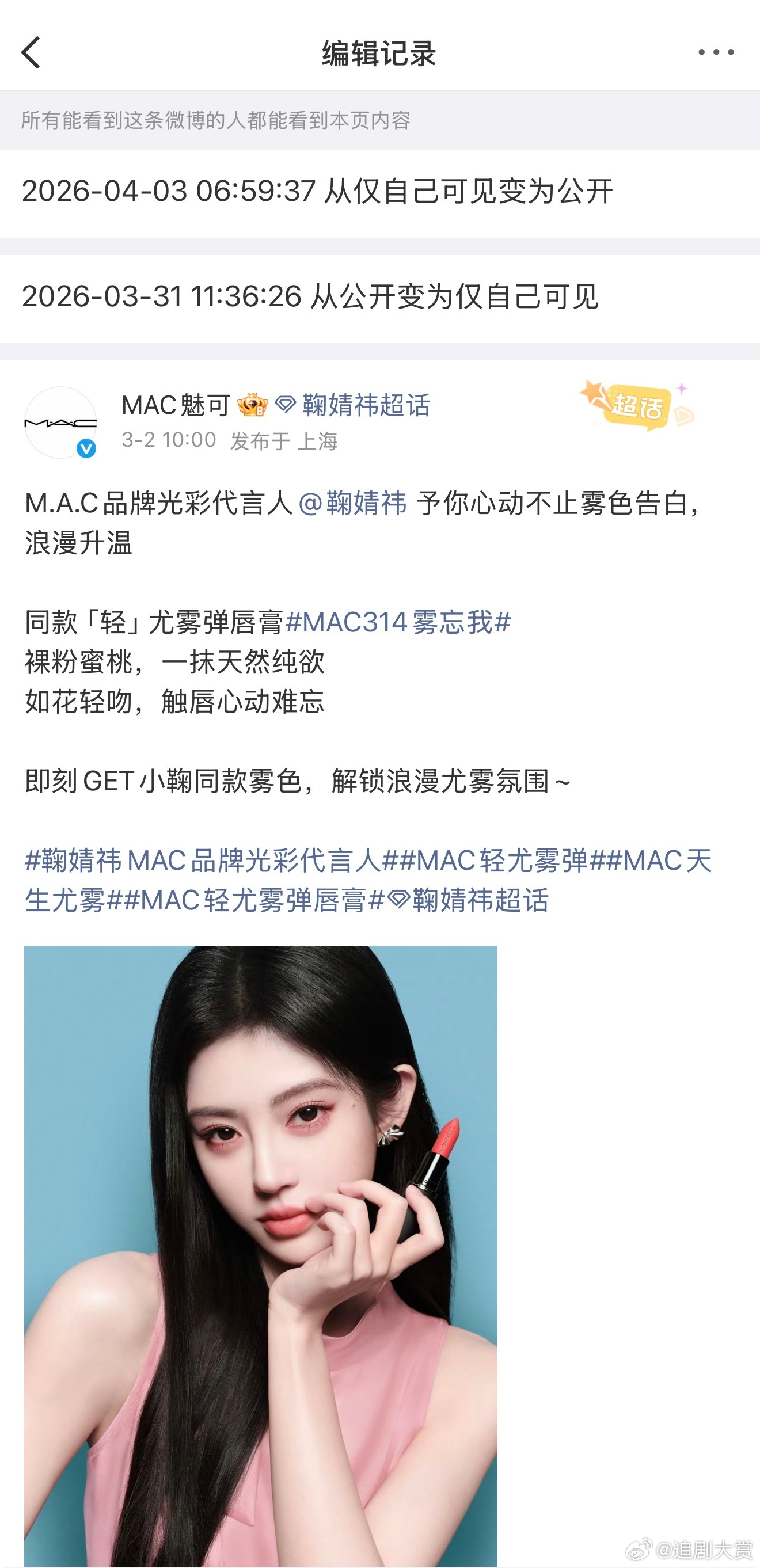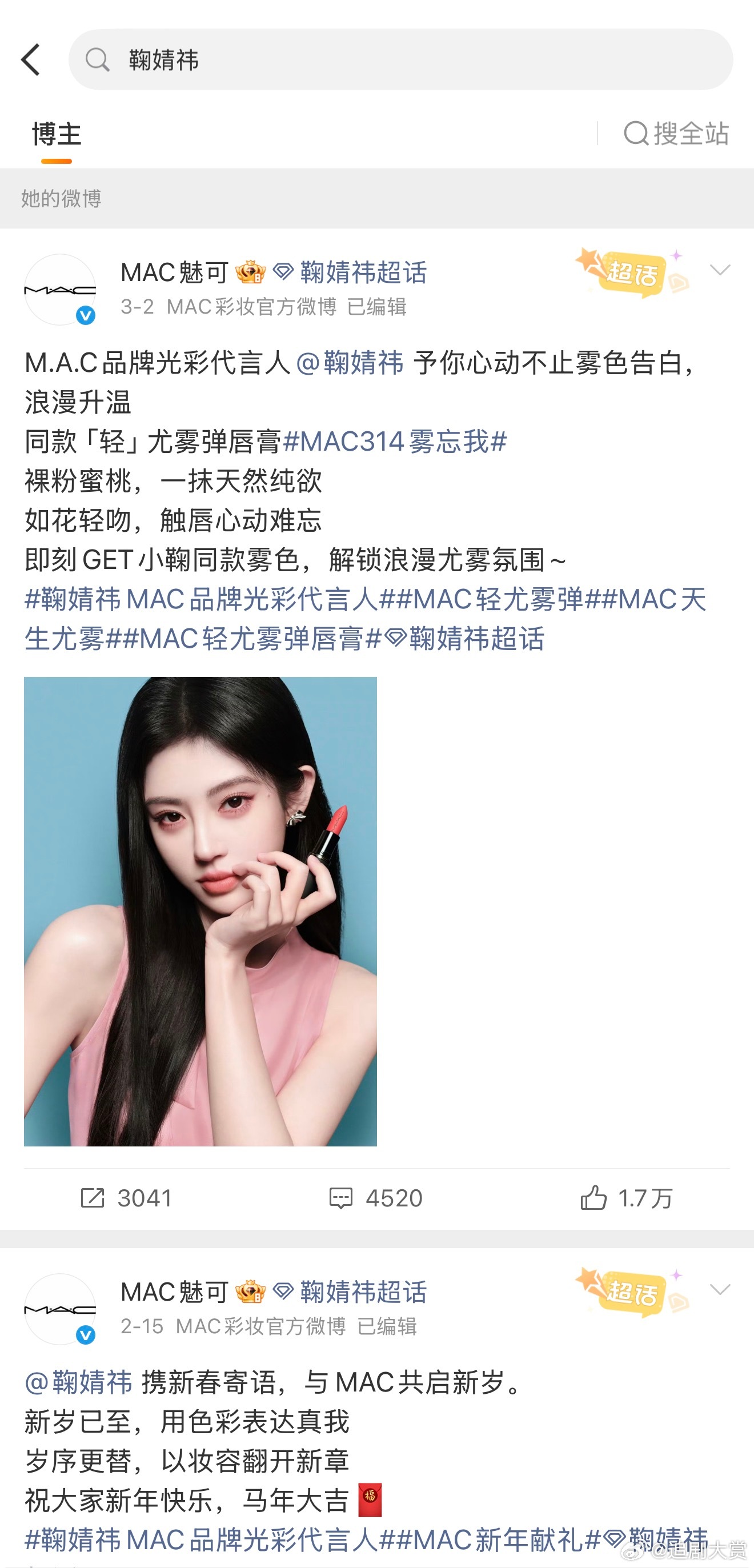Mac公开鞠婧祎相关昨天mac隐藏鞠婧祎相关微博发酵之后,今天Mac公开鞠婧祎相