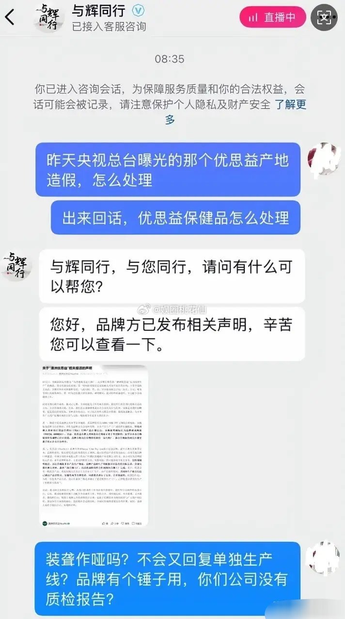 随着网红保健品优思益被央视新闻曝光为假洋牌,为优思益代言或者带货过的明星网红们纷纷被推上了舆论的风口浪尖。有人选择直面问题,为消费者退款;有人却始终一言不发,打算冷处理。其中,头部直播间的主播董宇辉的态度引发热议。