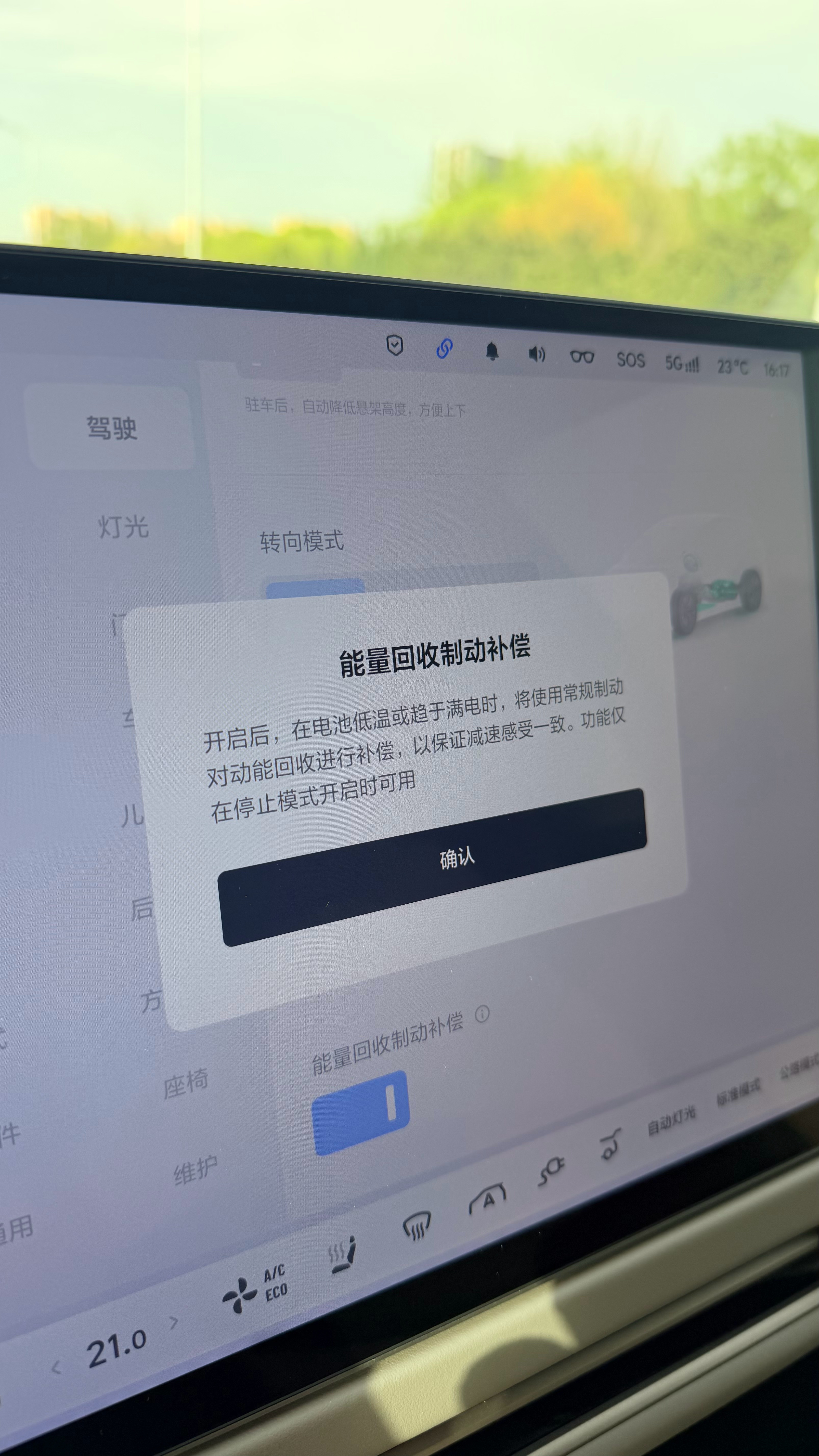 理想i8 的“停止模式”,也就是之前常说的单踏板模式,体验了。1、动能回收超级强,松加速踏板的时候能感觉到明显的减速,利用好了走这种加塞拥堵路段,基本可以一个踏板控制。2、在加速踏板放松回收的末端,回收力不够线性,或者是说我还没完全适应吧,这后如果是拥堵需要“松,踩,松,踩”的低速精细调控,还差点火候。3、对于在城市里开 i8通勤来说,更多时间还是在辅助驾驶,用得少,感觉 i6会更实用一些。i6的驾驶感会更好,车身更小,更适合“开”。很好奇理想这团队是如何做到的,日常使用能量回收即便最强也不会觉得有多强停止模式突然就很强。以至于我以为会不会是让刹车也参与了,但是看了一下解释,刹车介入停止模式只在电池低温或者趋于满电的时候。简单理解,那时候动能回收电太多,找不到地方放