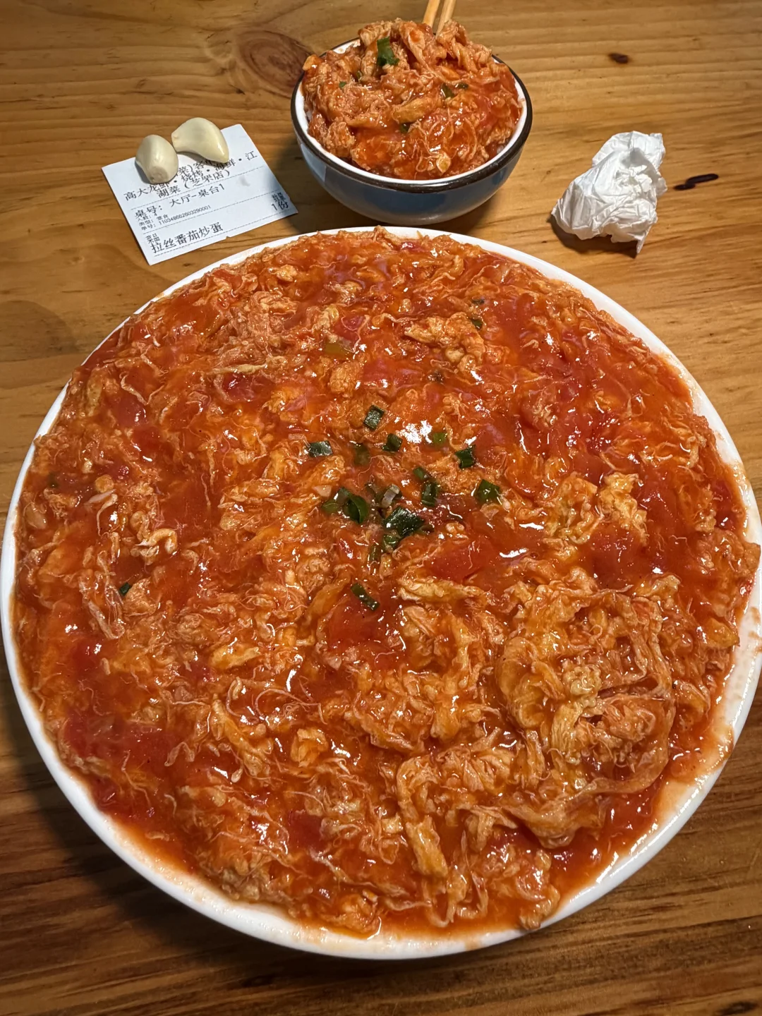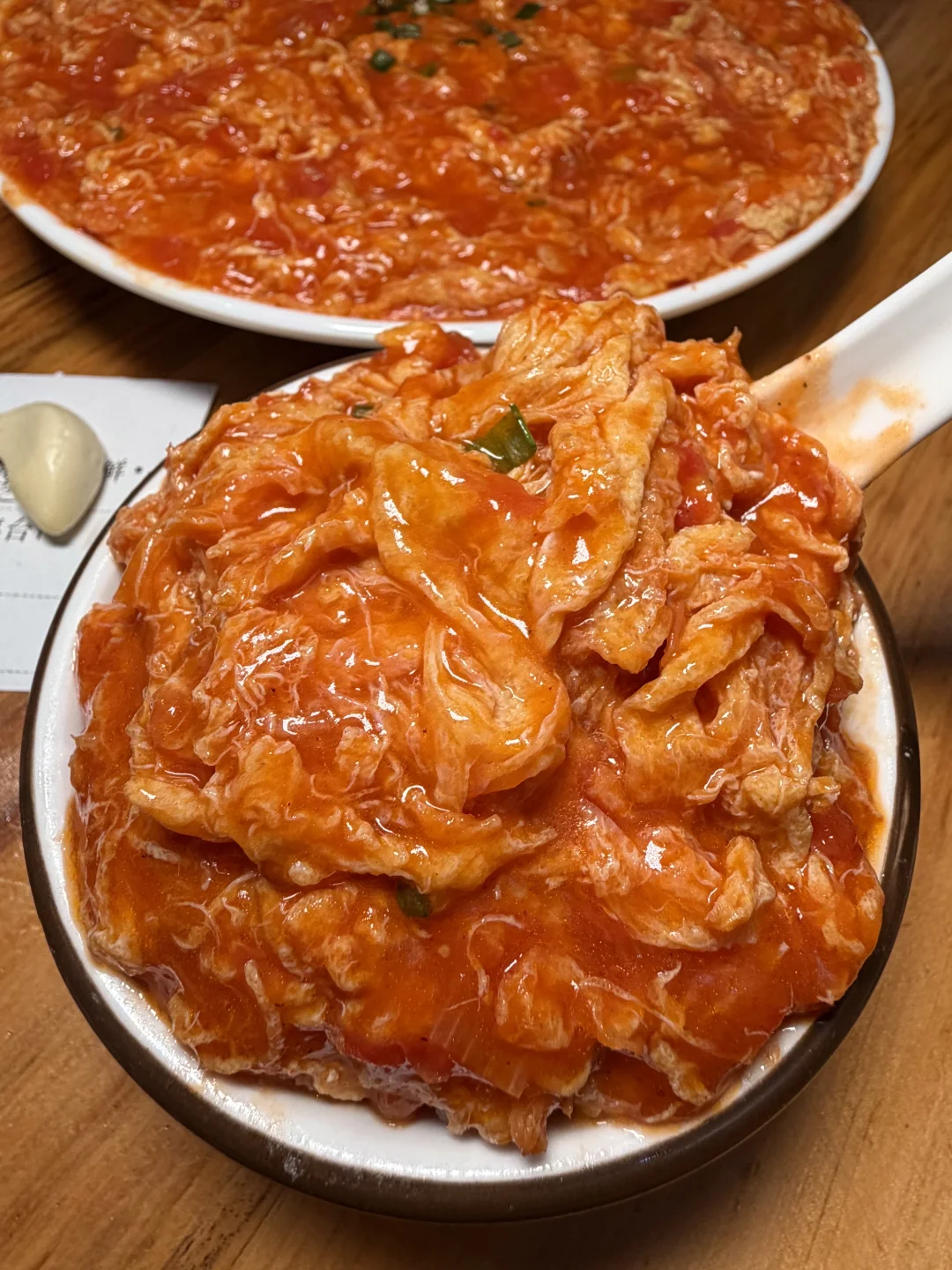 拉丝番茄鸡蛋🍅蒜蓉虾、香辣蟹、拉丝番茄鸡蛋味道都满扎实滴!