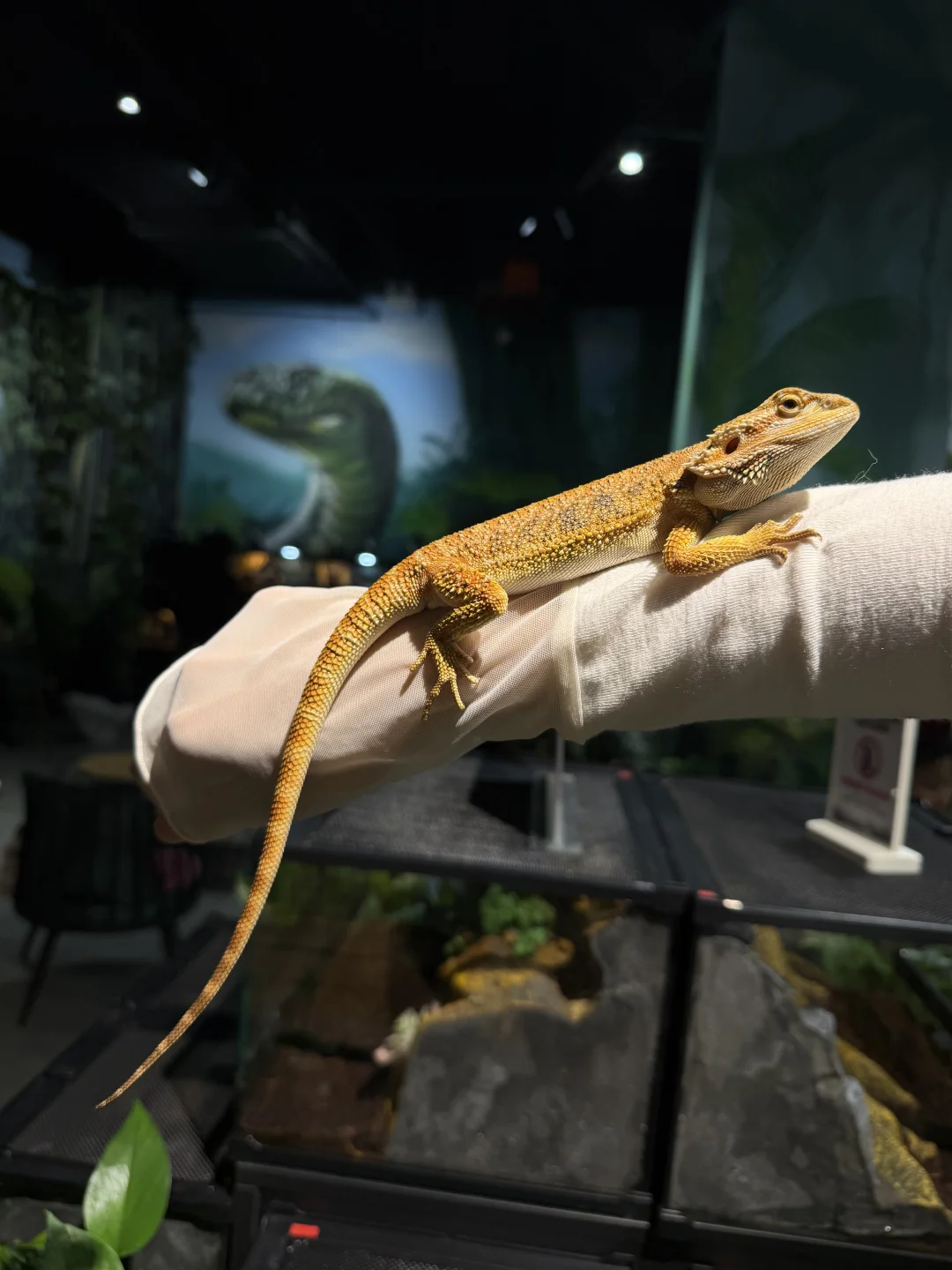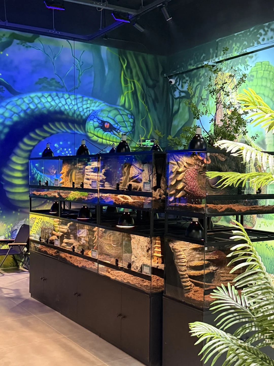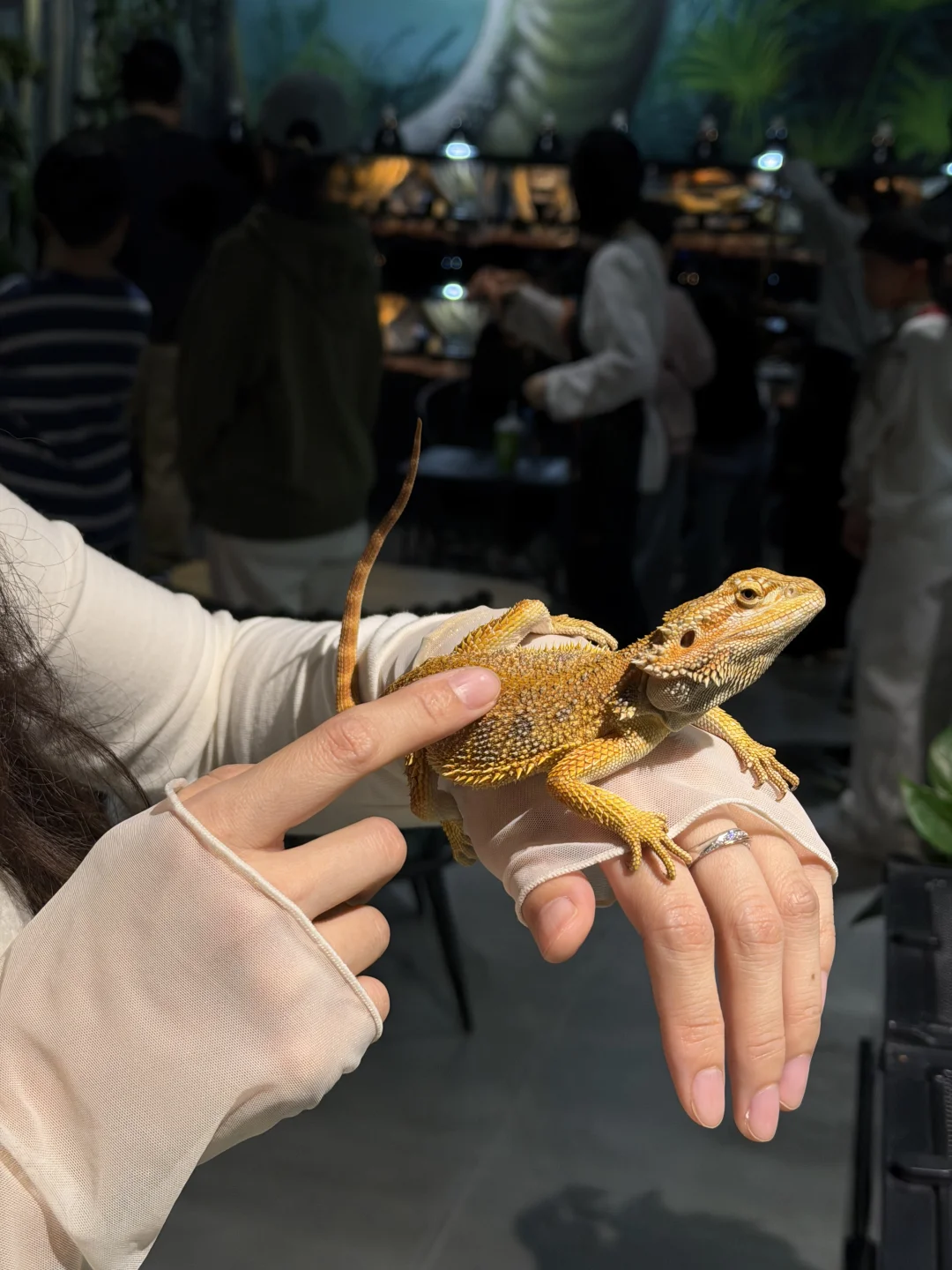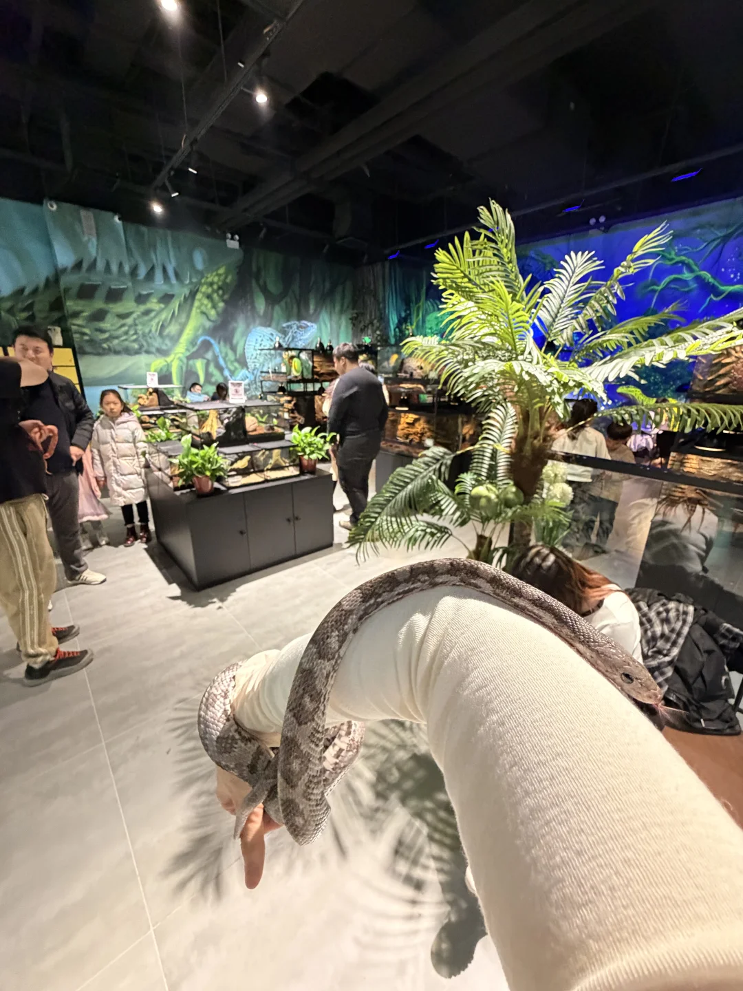 谁懂啊!以前看蛇只敢隔着屏幕划走,今天被闺蜜硬拉来「沉浸式撸蛇」,直接颠覆认知! 店里的蛇蛇居然都是软fufu的!店主小姐姐会先拿温顺的玉米蛇给新手试手,鳞片贴在手臂上,像戴了条会轻轻蠕动的丝绸手环,温热的!! 奶黄色的「牛油」像块移动的奶酪,粉白渐变的「暴风雪」自带柔光滤镜,还有条黑王蛇,肚子居然是镭射光! 还有好多守宫啊!蜘蛛🕷️!开眼界了!! 好像我的勇气都变成了好奇✨ 果然万物皆可爱,只是缺少了解的机会~