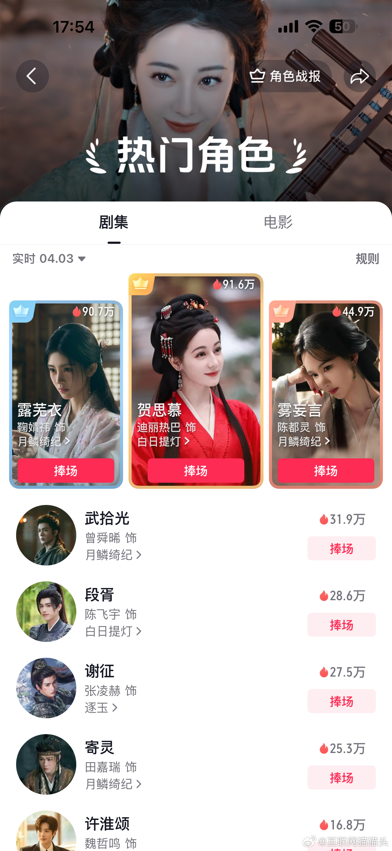 🍊和⑧在🫘角色热度榜一榜二缠缠绵绵的预计周末露芜衣就会超过贺思慕了