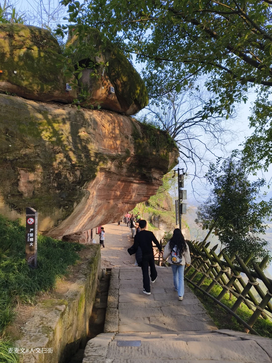 站在栈道上仰望,佛身与身后的天然石岩构成天然殿堂,山风穿崖而过,佛前青烟袅袅。一边是守城将士守护的铁血孤城,一边是佛祖静守的慈悲安宁,刚柔交织,这大概就是钓鱼城最动人的注脚。