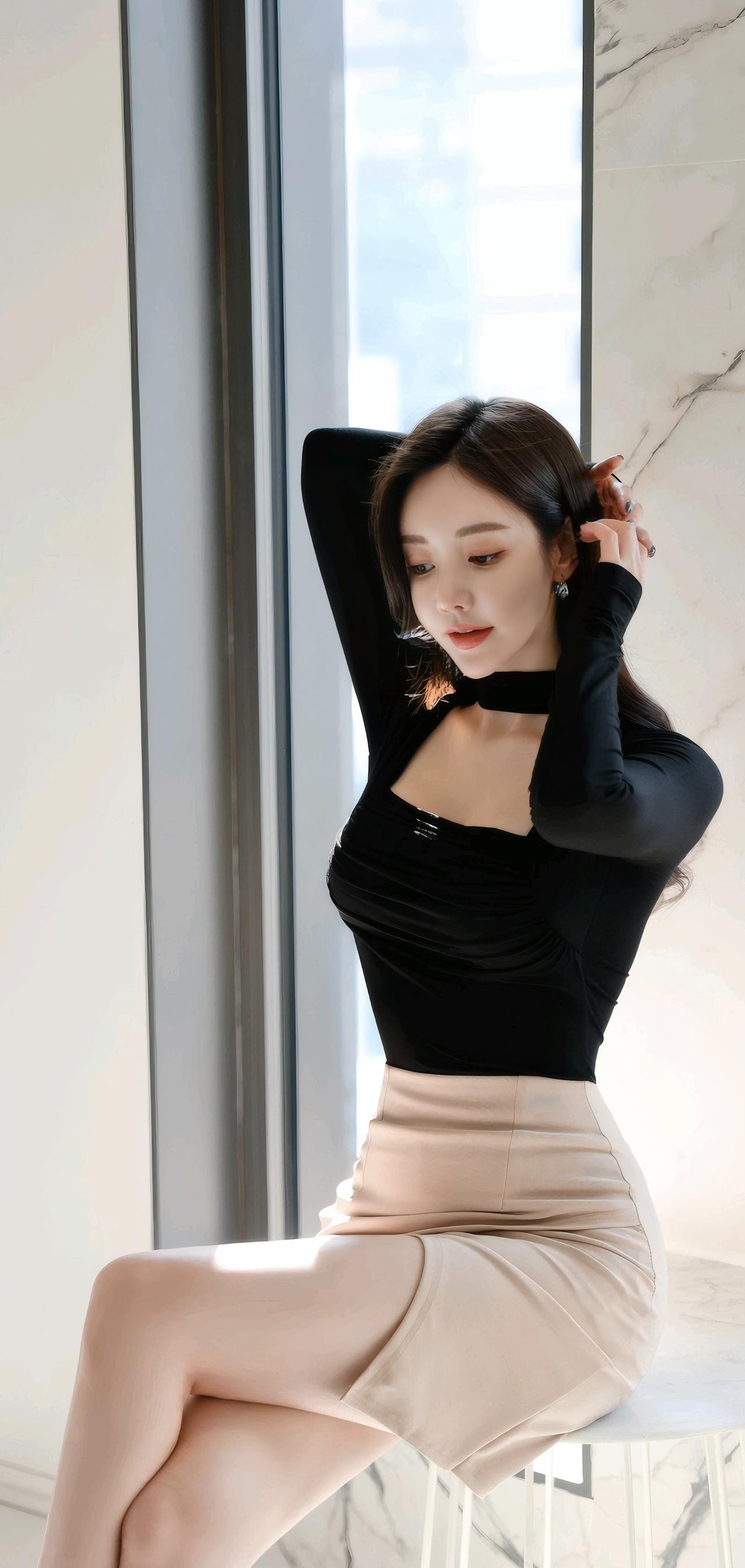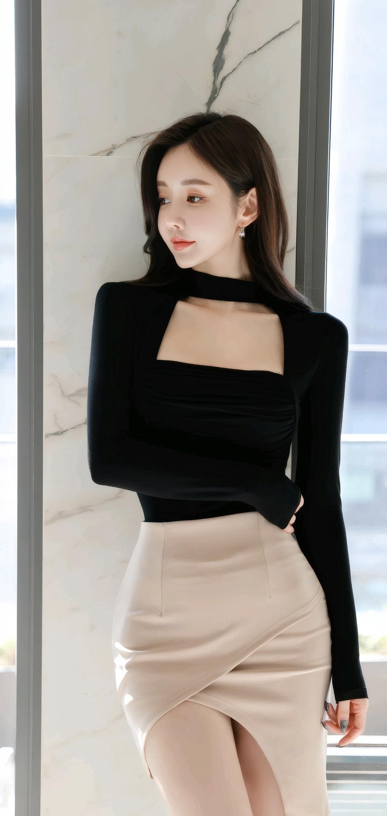 优雅黑衣搭配米色短裙,都市女性风范!