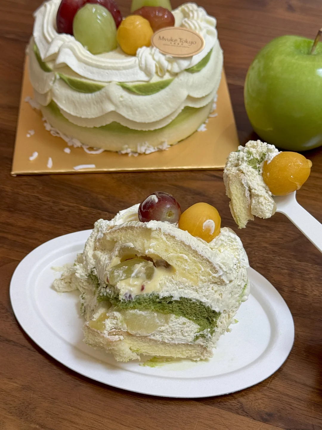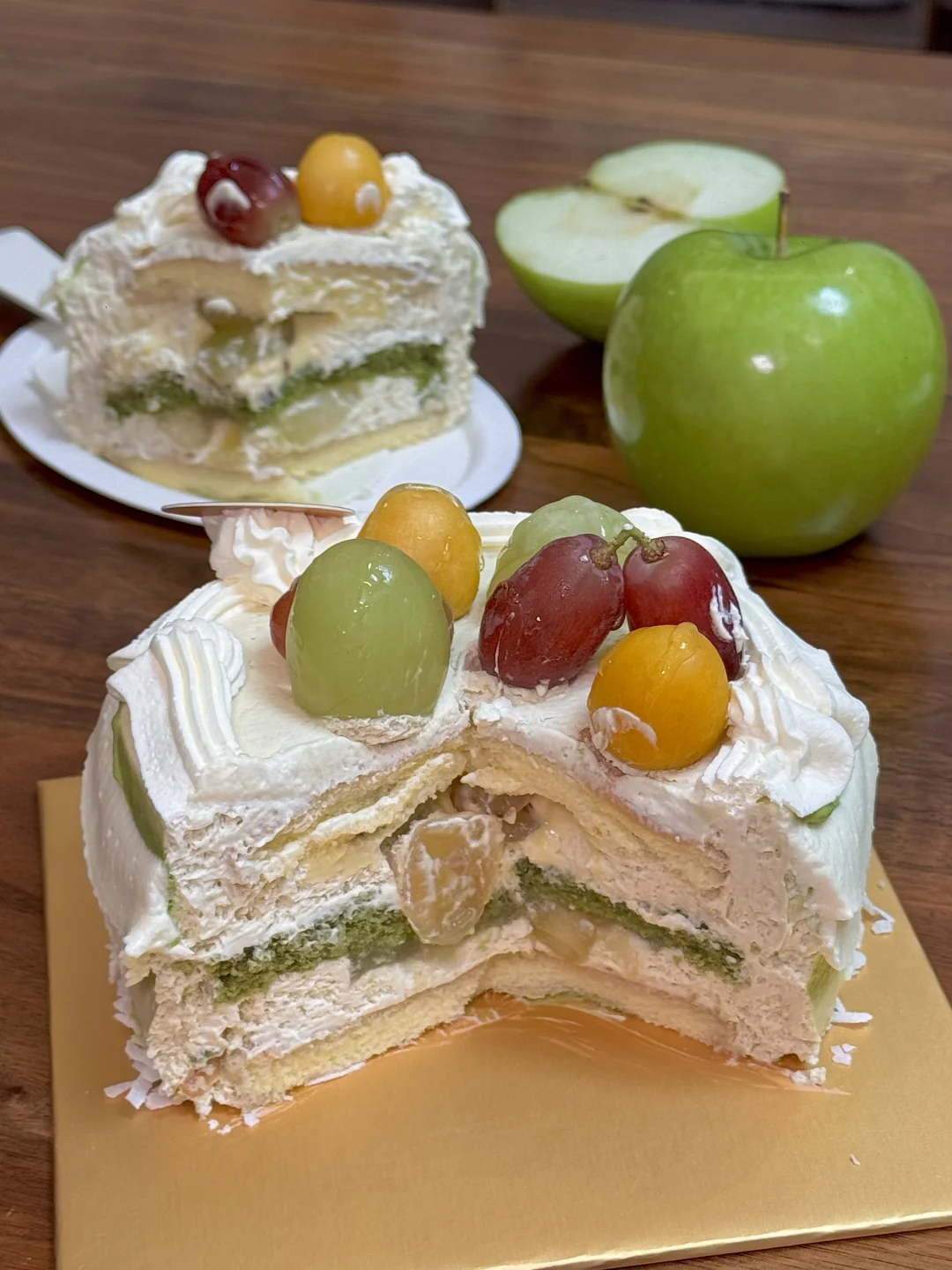 白芽奇兰青苹果蛋糕!! 奇兰茶➕青苹果,好妙的感觉~ 水果味hin丰富,加了茶味,不腻! 苹果真的是很让人心情愉悦的水果 过不过生日吃到🍏都巨开心!!!
