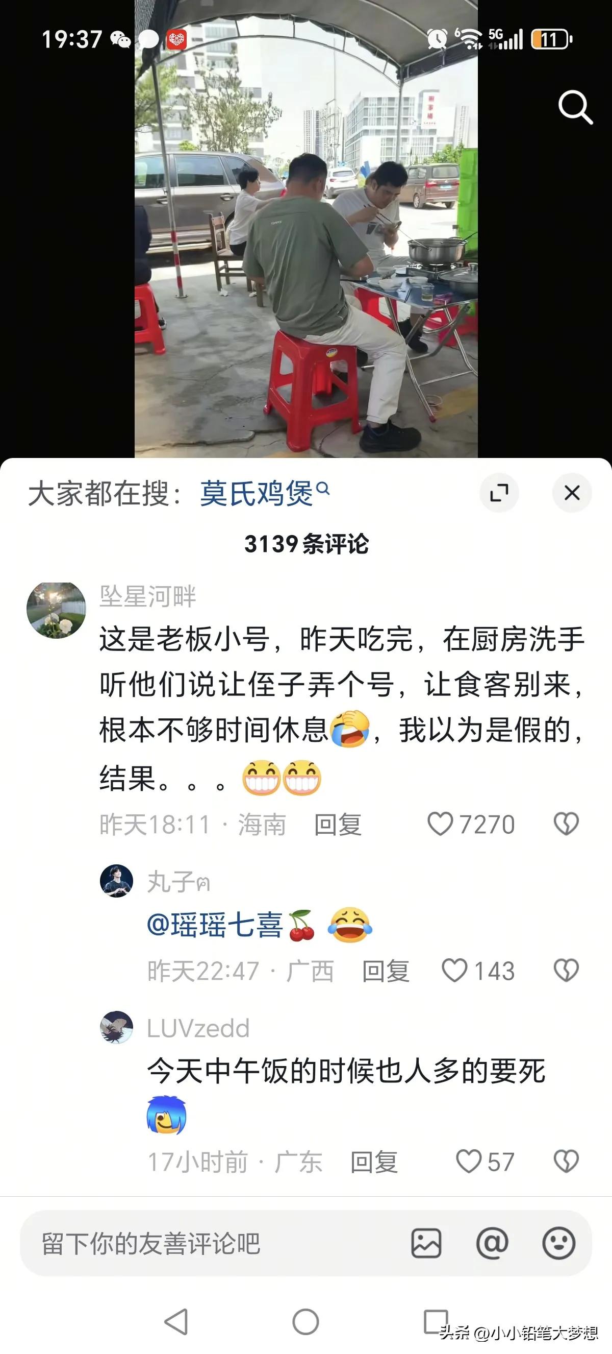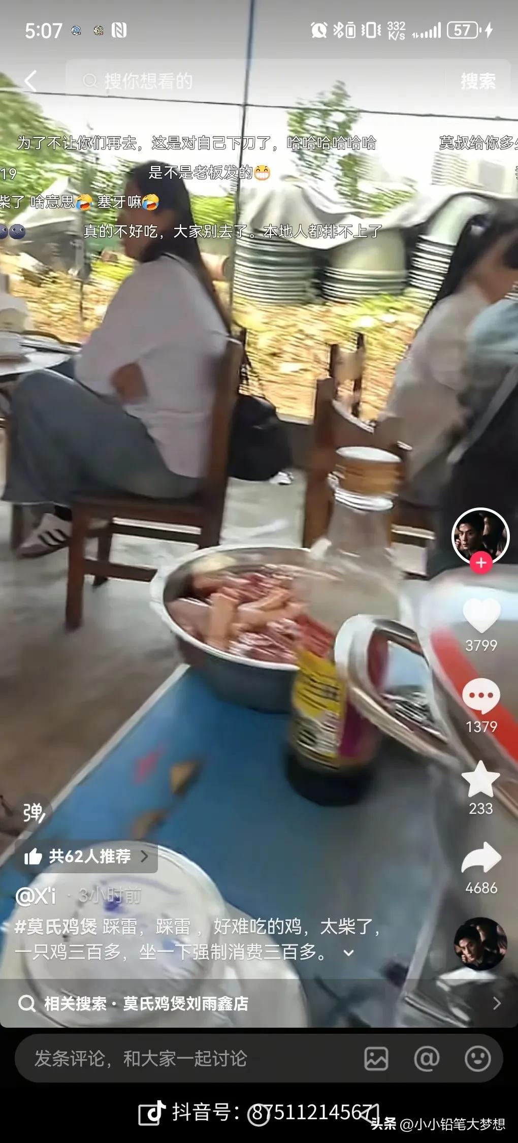 果然,一个火了的饭店,都有一位叫苦连天的老板。 看到莫氏鸡公煲的直播间,我差点没笑过去,这拿手机开着直播,老板却不说话,也不进行直播,全程都是人来人往。 不嫌事大的吃客却来了劲,都是等待排队的,这闲来无事,索性看着直播的手机,开启了主播,那直接是反向操作。 排队食客表示,不要来了,难吃死了,吃了还会拉肚子,千万不要来,我们都帮你试过了。然而,这莫氏的老板却每天都是愁眉苦脸,即便是电视台来采访的时候,那根本就是没空搭理,那更是吐槽,这群人为了吃鸡煲,那是从早上就开始排队,一直到下午的3点,家里的鸡还要人工进行杀,休息喝口水的功夫都没有。 老板心中想着赶快让热度降下去,于是用自己的小号去差评自己的产品,从头到尾都没有一句好话。 人家做生意那是怕没有生意,这倒好撵着客人走。