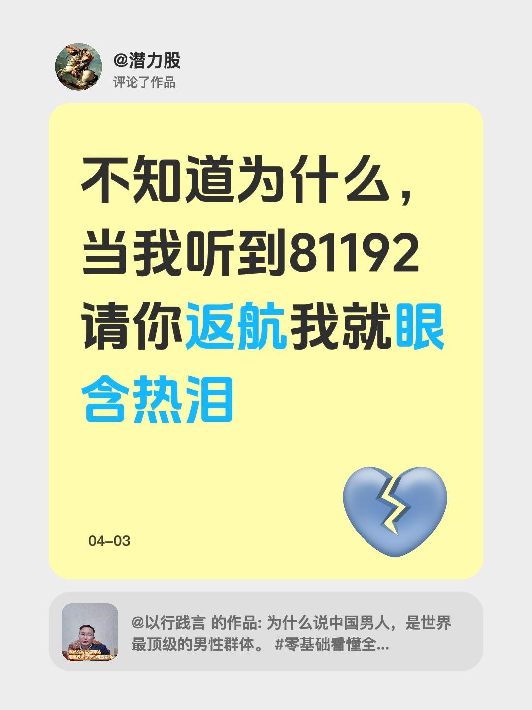 我评论了@以行践言的作品: 不知道为什么,当我听到81192请你返航我就眼含热
