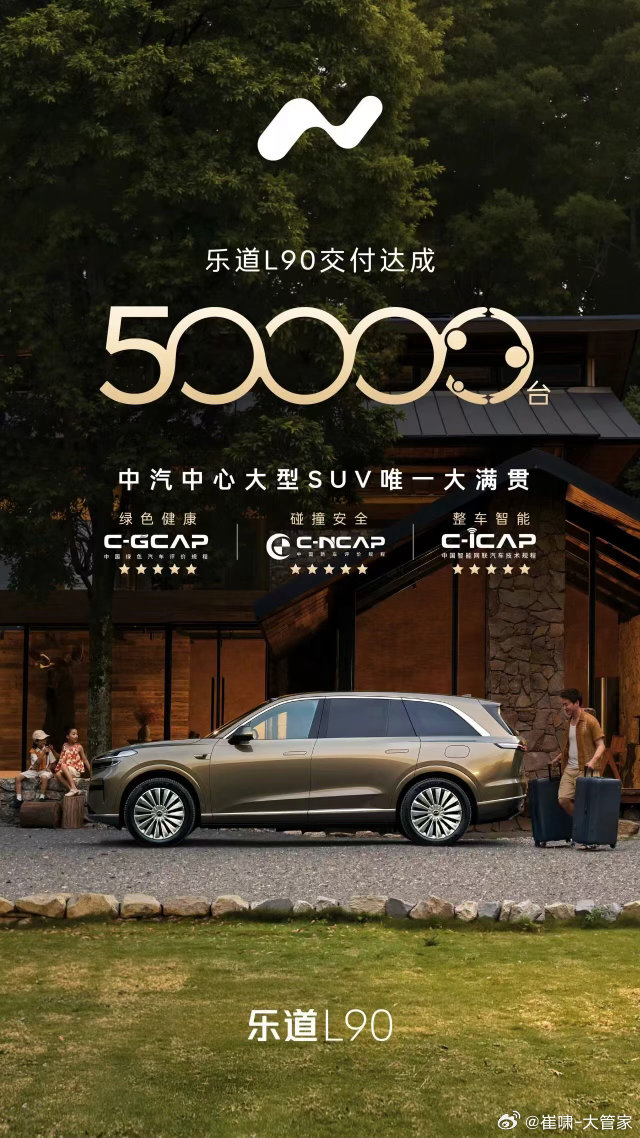 嗯哼~2026年4月3日,乐道L90达成第50,000台新车交付里程碑。