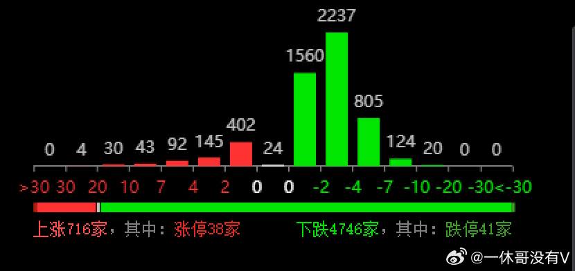 非要找原因,说白了,还是清明假期不稳定性因素,美伊局势,及内资不行,一到放假就战战兢兢,就想跑,加上量化干死人了,就提前减仓,引发的假期情绪宣泄走出了这个熊样,普跌,绿4700+,其中绿2-4%达到了2237家,红716家,涨停38家,少于跌停的41家,人气情绪亏钱效应明显