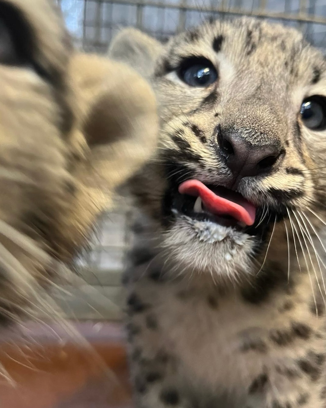 请欣赏墨尔本动物园几位雪豹崽崽在喝奶后的可爱表情