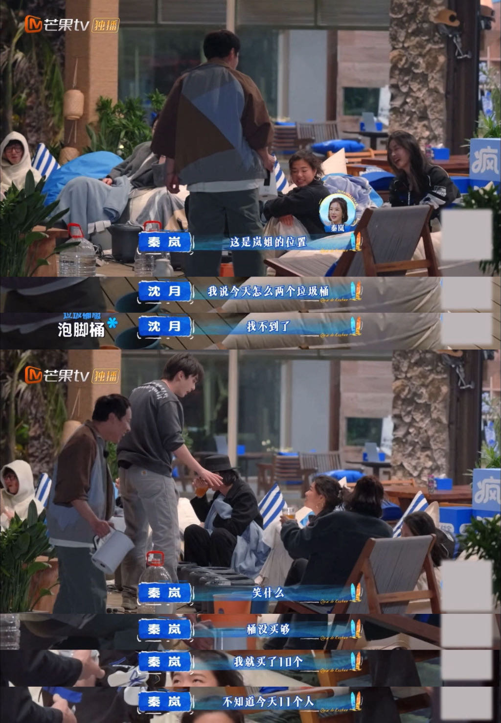 秦岚好接地气的泡脚方式秦岚把垃圾桶征用成泡脚桶不讲究排场只讲究舒服,秦岚礼让完众人,一双脚踩两个垃圾桶自在泡脚超萌