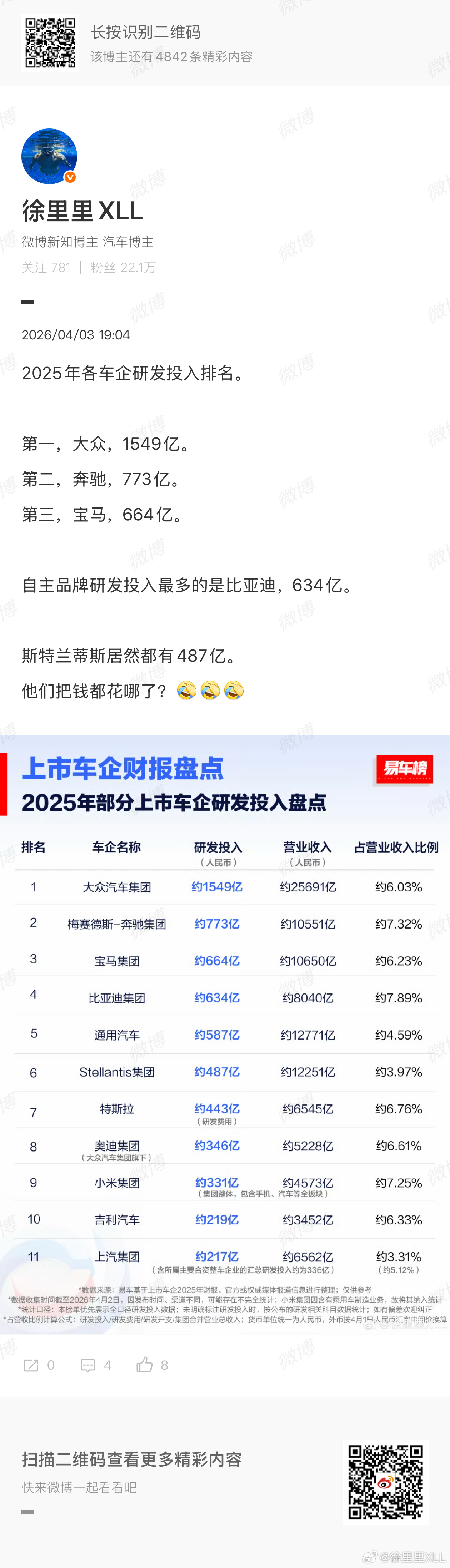 当然,这个东西并不能实际反应车企的实际技术水平。臃肿的管理结构可能会导致研发投入的飙升。精益生产的理念也会让每一分钱都花在刀刃上。