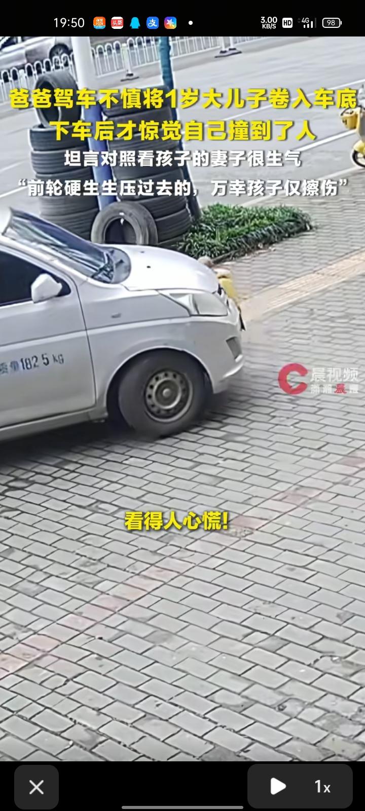 4月2日,衡阳常宁市。爸爸驾车不慎将一岁大儿子卷入车底,下车后才惊觉自己撞到了人。 当事人吴先生称,回想此事仍心有余悸,坦言当时对照看孩子的妻子很生气。刚刚去医院给孩子包扎了,孩子没什么事,脑袋有点擦伤。提醒各位家长,带孩子千万要小心