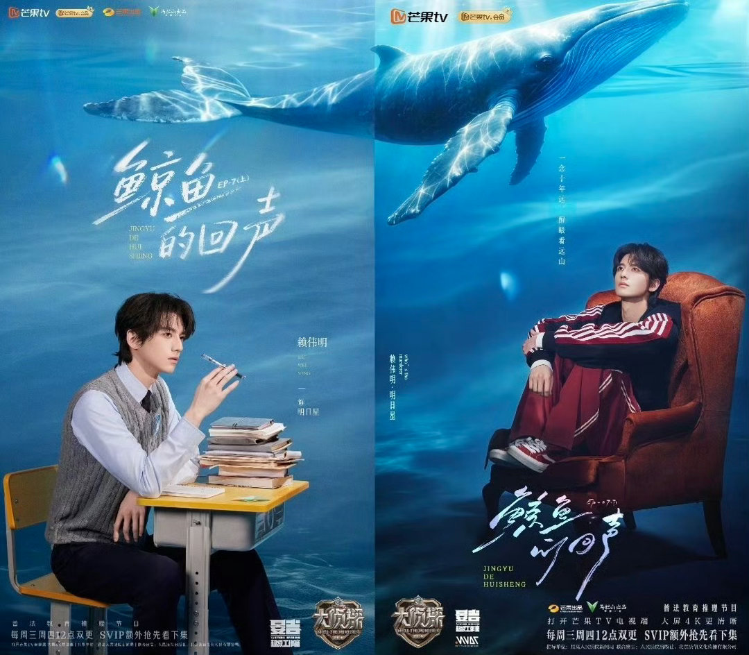 发现了大侦探海报的小巧思谁还没被大侦探细节杀疯!《鲸鱼的回声》上下期海报拼起来就是完整治愈大鲸鱼🐳,动态还带鲸鸣音效,氛围感拉满。节目组把浪漫藏进细节,连海报都在埋线,细节控狂喜!大侦探