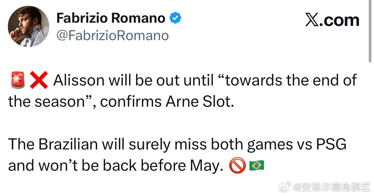 阿利森这基本上和赛季报销没啥区别了,罗马诺说五月份之前都回不来了…….