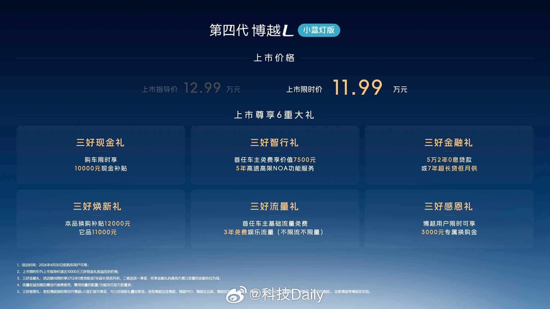 第四代博越L小蓝灯版上市,闪闪发光的小蓝灯,智能化实力拉满,最重要的是它的价格仅为11.99万元。