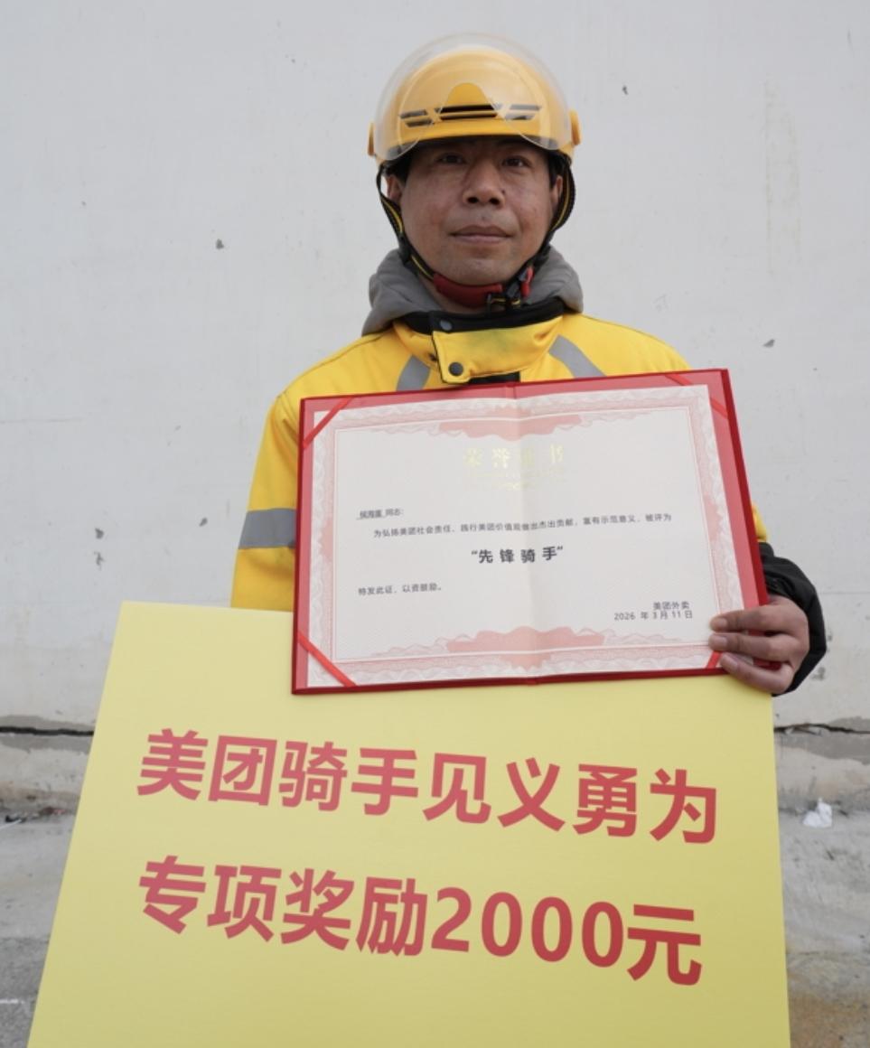 同学亲历,感慨万千!他说∶说实话,以前总觉得“外卖小哥救人”这种新闻离自己挺远的。直到昨天,这事就发生在我家楼下。我在松江亲眼看见一个外卖小哥扔下三单去救人。 事情是这样的,3月10号中午11点多,云间新天地那边突然传来一阵喊叫声,一个小孩脸都发紫了,家人抱着急得直跺脚。旁边有人打120,有人干着急,但谁也不敢上手。 这时候一个穿黄衣服的外卖小哥,车一扔就冲过去了。这人就是同学所说的侯海富,河南人,在松江送了两年外卖。 他从家人手里接过孩子,开始使劲拍背、按压。当时在旁边看着人都捏把汗,想着孩子是否能脱离危险,想着这外卖小哥还要靠送单吃饭。可侯海富一门心思救,40秒愣是把饼干块给弄出来了。 可孩子还是闭着眼。小哥问了孩子妈妈句“送去最近的医院可以不”,得到答复后,把孩子往怀里一抱,电动车一拧油门就冲出去了。800多米的路,他一手抱娃一手扶车把,路上还一直喊“让一让”,一直把孩子送到医院,孩子脱离危险后,侯海富便悄悄离开医院继续送餐,后来孩子父亲打听到他加他微信,转红包致谢也拒收。 后来孩子没事了。有人问他怎么不留个证据,他回了句:“拿那个还有时间吗?都是当父亲的人。” 美团了解情况,把他那个超时的三单给免了,还发了奖。 外卖小哥热心,平台暖心,社会就需要这样的正能量,这样的平台多了,热心的外卖小哥也会多了,当有人处于危险边缘的时候,就会有很多人站出来,避免不好的事故发生。