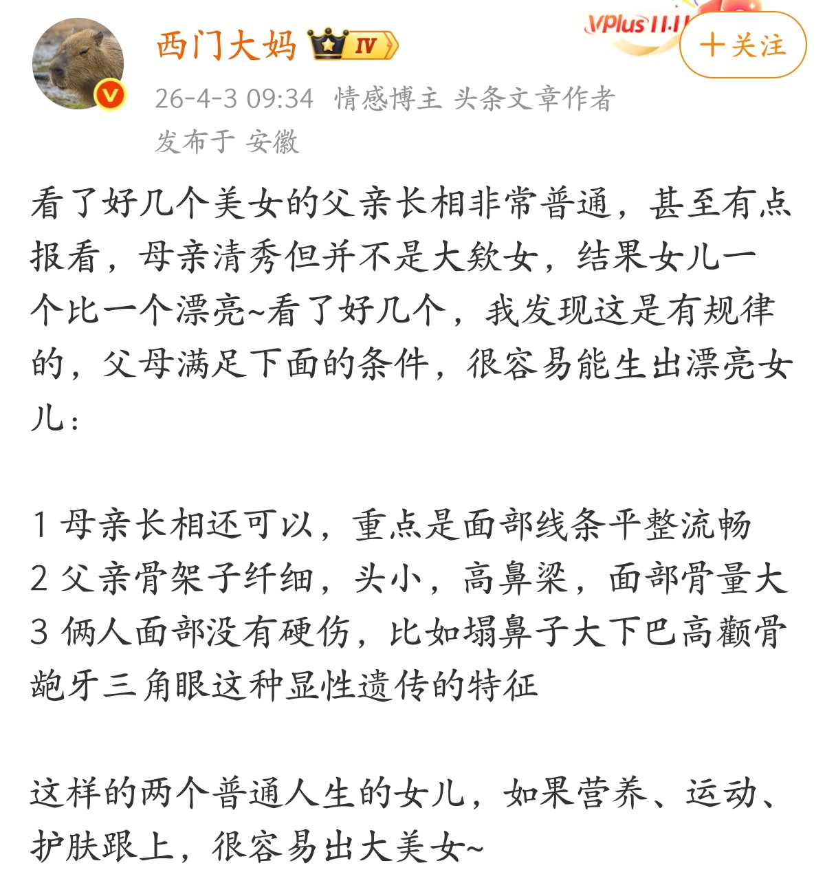 父母满足下面的条件,很容易能生出漂亮女儿。