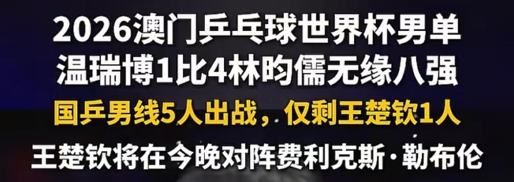国乒世界杯男队首次只有一人进入16强,只剩王楚钦一个人了!哪怕王楚钦战胜勒布伦晋级8强,也是历史上绝对仅有的最差局面!国乒男队这是怎么了,以前我们手拿把攥的项目,现在怎么退步这么快了!究竟是什么原因导致今天的局面呢!