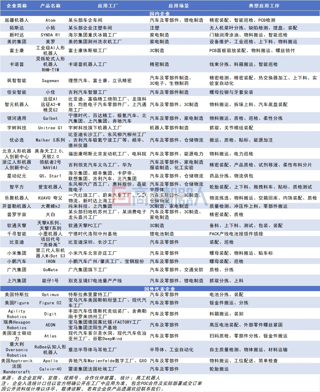 据高工机器人不完全统计,国内外已有超30家企业公开人形机器人“进厂打工”的实操案例(图1),其中不少已渡过概念验证(POC)阶段,迎来收获真金白银订单的实战期。