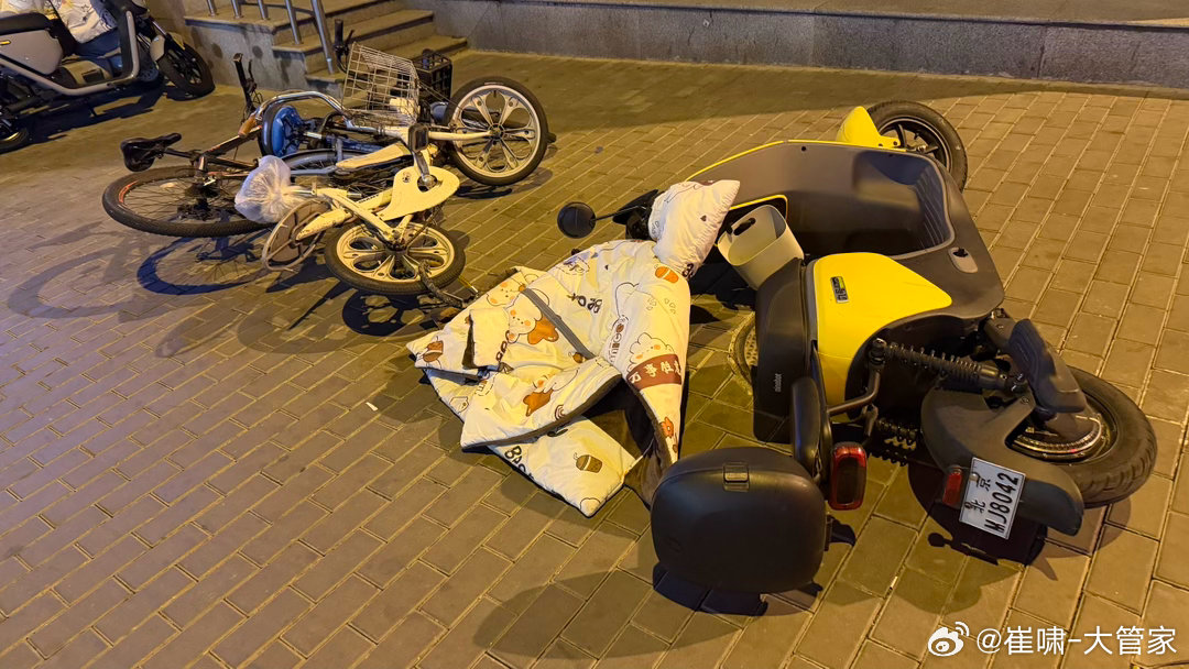 您知道北京今天的风有多大吗?看照片,别管是电的,还是蹬的,一律齐刷刷躺下。还有一