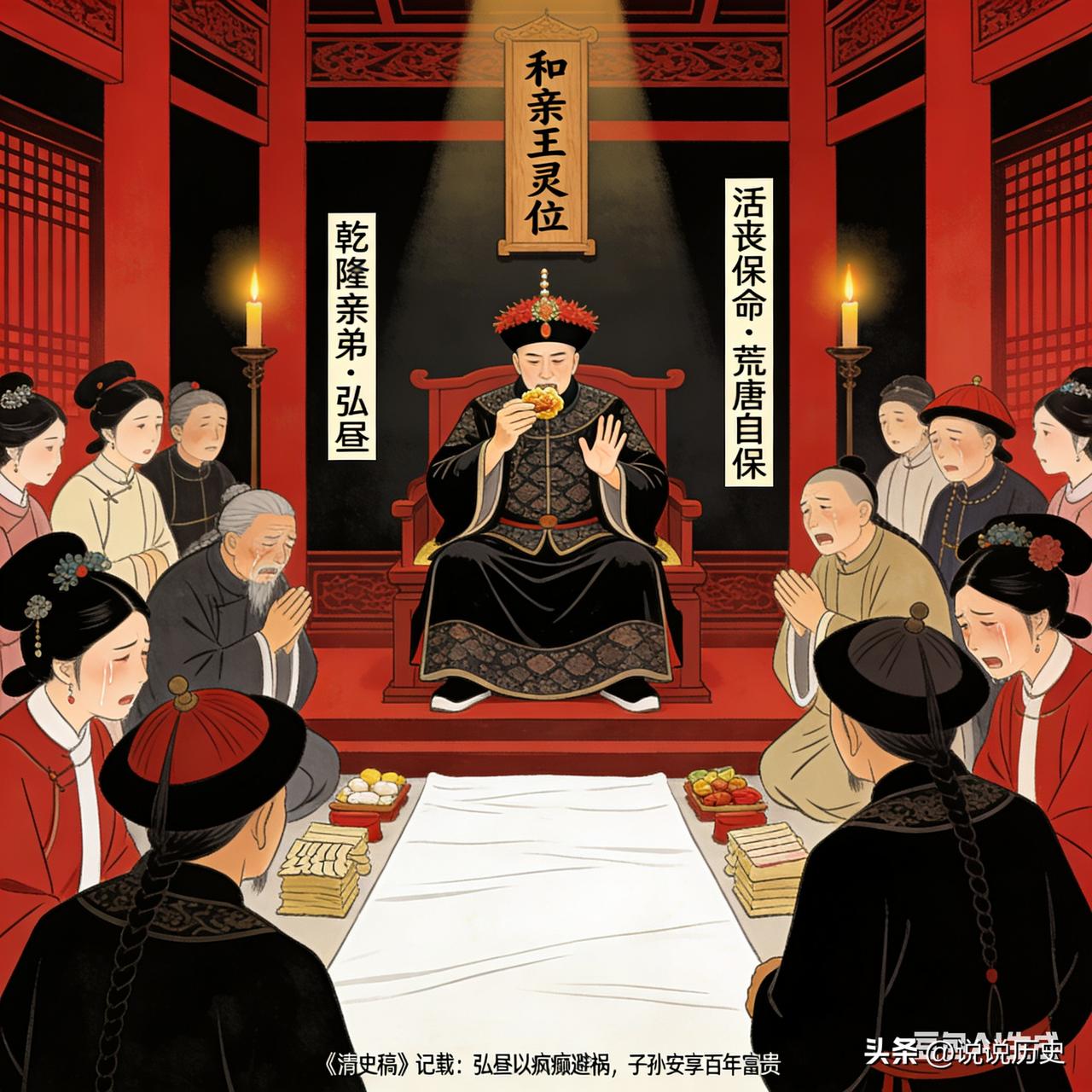 清朝有位王爷,平生最大的爱好,竟是给自己办“活丧”。他端坐在灵堂正中,看着满堂家眷哭天抢地、哀嚎不止,自己却捧着祭品大快朵颐,时不时还拍手叫好。他就是乾隆皇帝的亲弟弟,和亲王弘昼。世人都笑他疯癫荒唐,是皇室里最不成体统的笑话。可没人知道,正是这份看似没心没肺的“荒唐”,让他和他的子孙后代,在波云诡谲的帝王家,稳稳安享了百年富贵。 弘昼是雍正帝的第五子,和后来的乾隆帝弘历只差三个月出生,从小一起在书房读书,同吃同住,情分比别的兄弟要深得多。可这份从小一起长大的情分,在弘历坐上龙椅的那一刻,就多了层说不清道不明的隔阂。龙椅从来只有一把,坐在上面的人,看谁都带着几分提防,哪怕是手足兄弟,也免不了要多猜几分心思。弘昼把这一切看得太透了,他亲眼看着自己的父亲雍正,是怎么在九子夺嫡的血雨腥风里闯出来的,看着那些叔伯们圈禁的圈禁、赐死的赐死,连自己的三哥弘时,就因为站错了队,落得个削除宗籍、郁郁而终的下场。皇权面前,从来没有什么牢不可破的亲情,只有你死我活的争斗。 他心里清楚,在帝王家,太能干是错,太贤明是错,太得人心更是错。你越是完美无缺,皇帝心里的刺就扎得越深。与其战战兢兢等着被猜忌,不如自己先把名声搞臭,活成一个没人放在眼里的荒唐王爷。 那场场轰动京城的“活丧”,就这么办了起来。他不光自己端坐在灵位前,心安理得地吃着给死人准备的祭品,还传令满朝文武都来王府吊唁,带着厚礼来哭丧。一场丧事办下来,白花花的银子收了不少,疯癫荒唐的骂名,也攒了个盆满钵满。朝野上下都在议论,和亲王就是个没皮没脸的疯子,根本不配当皇室宗亲。 这些话传到乾隆耳朵里,他非但没动怒,心里反而踏实了不少。一个只知道胡闹、名声烂透了的弟弟,根本不可能有人愿意跟着他谋反,对自己的皇位半分威胁都没有。弘昼的荒唐,从来都踩在最精准的分寸上。他会在朝堂之上,因为一点口角争执,当着乾隆和满朝文武的面,把军机大臣讷亲按在地上一顿胖揍,却从来不会碰一下朝政大权;他会肆意挥霍乾隆赏给他的金山银山,却从来不会结交外臣、拉帮结派;他会把自己的王府搞得鸡飞狗跳,却从来不会做半点越界的事。 他曾写下一首《金樽吟》,字里行间全是把酒言欢的闲散,半分不提朝堂权术。世人只当他是醉生梦死的草包,却不知道这短短四句诗,是他写给乾隆的保命书。他明明白白告诉自己的皇帝哥哥,我这辈子就爱喝酒享乐,江山社稷,我半分兴趣都没有。 乾隆一朝,多少宗室亲贵因为一点点风吹草动就被削爵圈禁,连乾隆自己的亲儿子都免不了被严厉敲打。唯有弘昼,一辈子安安稳稳,乾隆把雍正潜邸的所有私产都赏给了他,让他成了宗室里最有钱的王爷。他活到五十九岁寿终正寝,乾隆给了他极高的哀荣,谥号为“恭”,一字定评,道尽了他一辈子的恭顺本分。 他的子孙后代,也承袭了这份藏锋的智慧,代代安享富贵,从来没有卷入过皇权争斗的漩涡,在风雨飘摇的清王朝,稳稳当当走过了上百年。世人都笑弘昼疯癫荒唐,可只有他自己知道,在吃人不吐骨头的帝王家,清醒的荒唐,远比盲目的精明,要靠谱得多。 信息来源:《清史稿·卷二百二十·列传七·诸王六》 《清高宗实录》 《晚晴簃诗汇·卷六》
