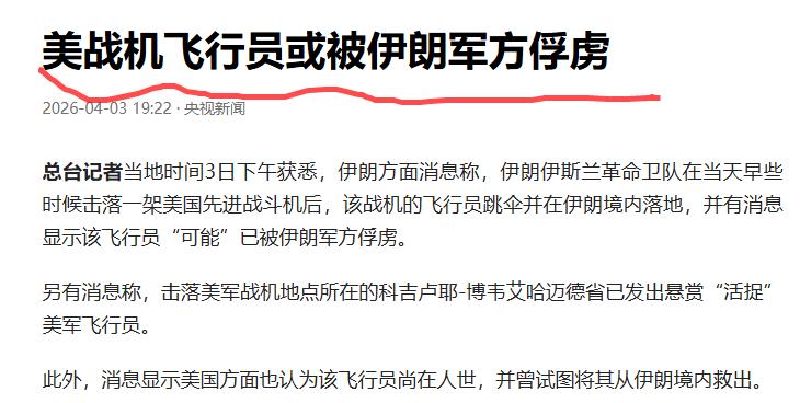 朗子要是真的抓住那个美国飞行员就最好,上电视让全世界都看见。 美战机飞行员或被伊朗军方俘虏 一是可以确认击落的飞机型号,二是可以作为重要的筹码。 现在税宗尴尬了。 救个人都救不回来,还能地面进攻吗? 美国只能打顺风局的,逆风局就只有投降。 现在美国的伟大胜利该怎么给全世界解释?[奸笑] 点右上角关注我,我们一起去看这个魔幻的世界