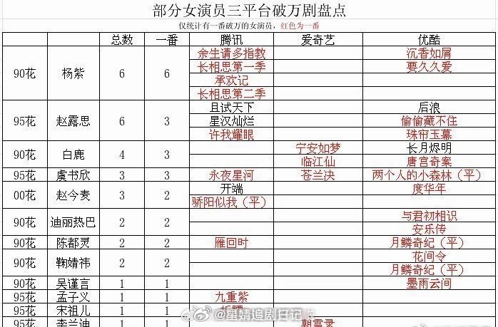 女演员三平台破万剧情况盘点🈶大家和平台绑定还蛮深的,好多都缺一个平台破万杨紫赵露思破万剧最多但是都缺🥝破万,只有虞书欣达成了三平台破万,最有希望达成三平台破万的是白鹿,马上要在🐧播《莫离》